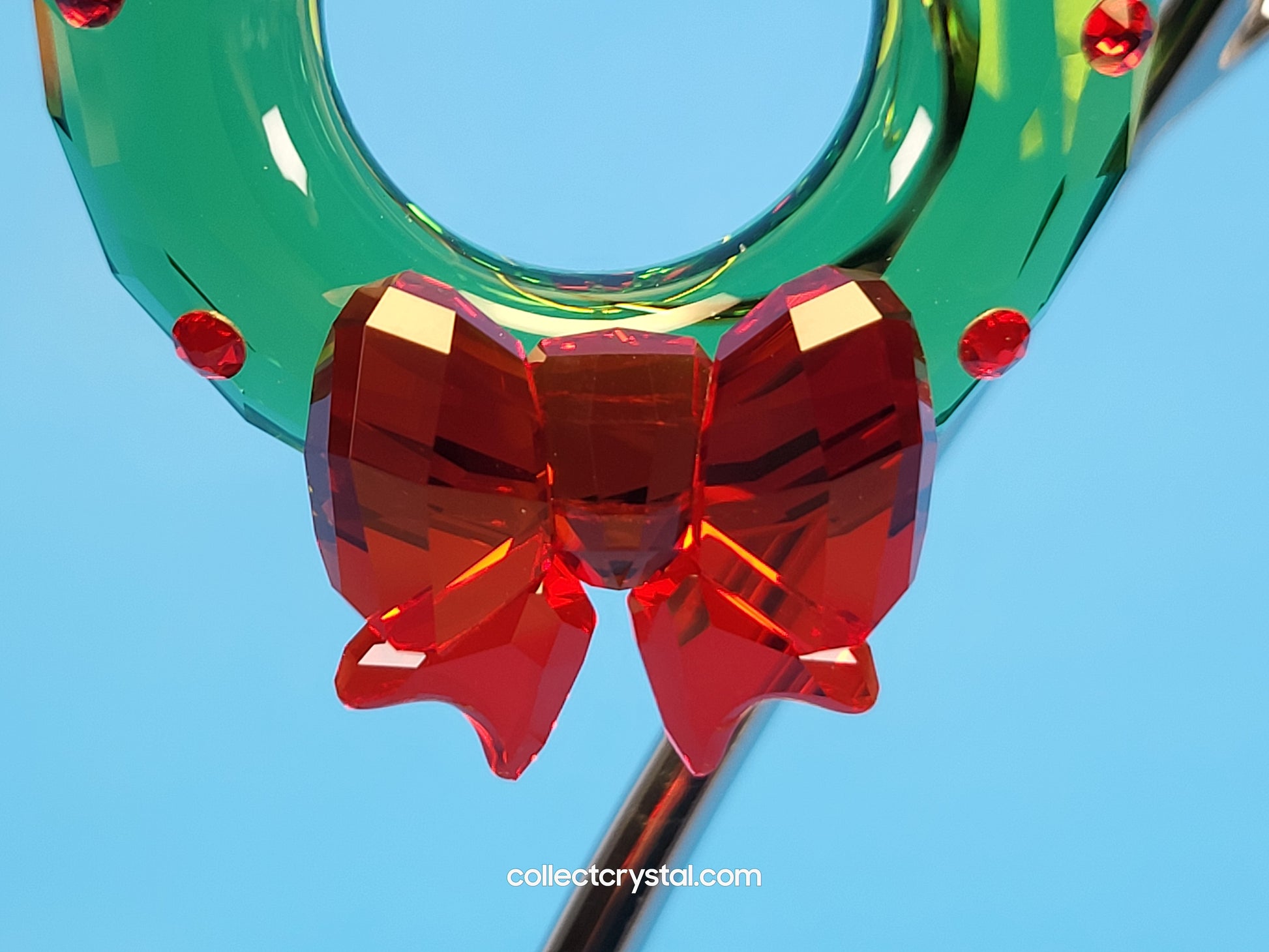Add a joyful sparkle to your holiday decor with this charming Christmas wreath ornament in traditional festive colours. Beautifully crafted in red and green crystal, it comes on a white satin ribbon. Use it to decorate your Christmas tree or festive table, hang it in a window for amazing light reflections or present it on Swarovski’s Christmas Ornament Home Display. An ideal gift.
