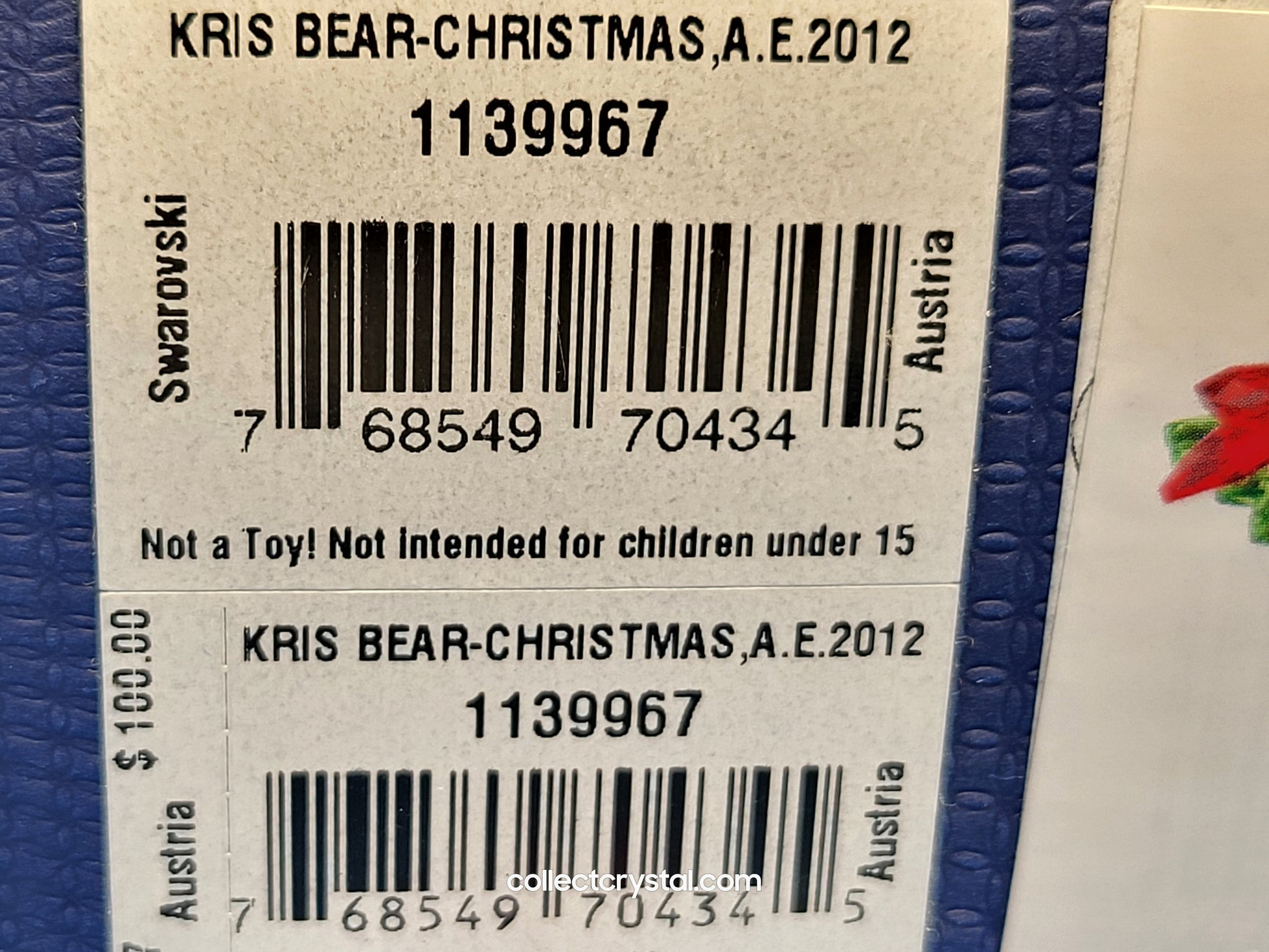 This year’s adorable Kris Bear holds a beautiful Poinsettia flower in Light Siam and Peridot crystal accented with Light Topaz crystal. Shining in clear crystal, this charming little fellow makes a heart-warming addition to your festive decorations and is only available in 2012. The year of issue is engraved on the bear’s left leg.