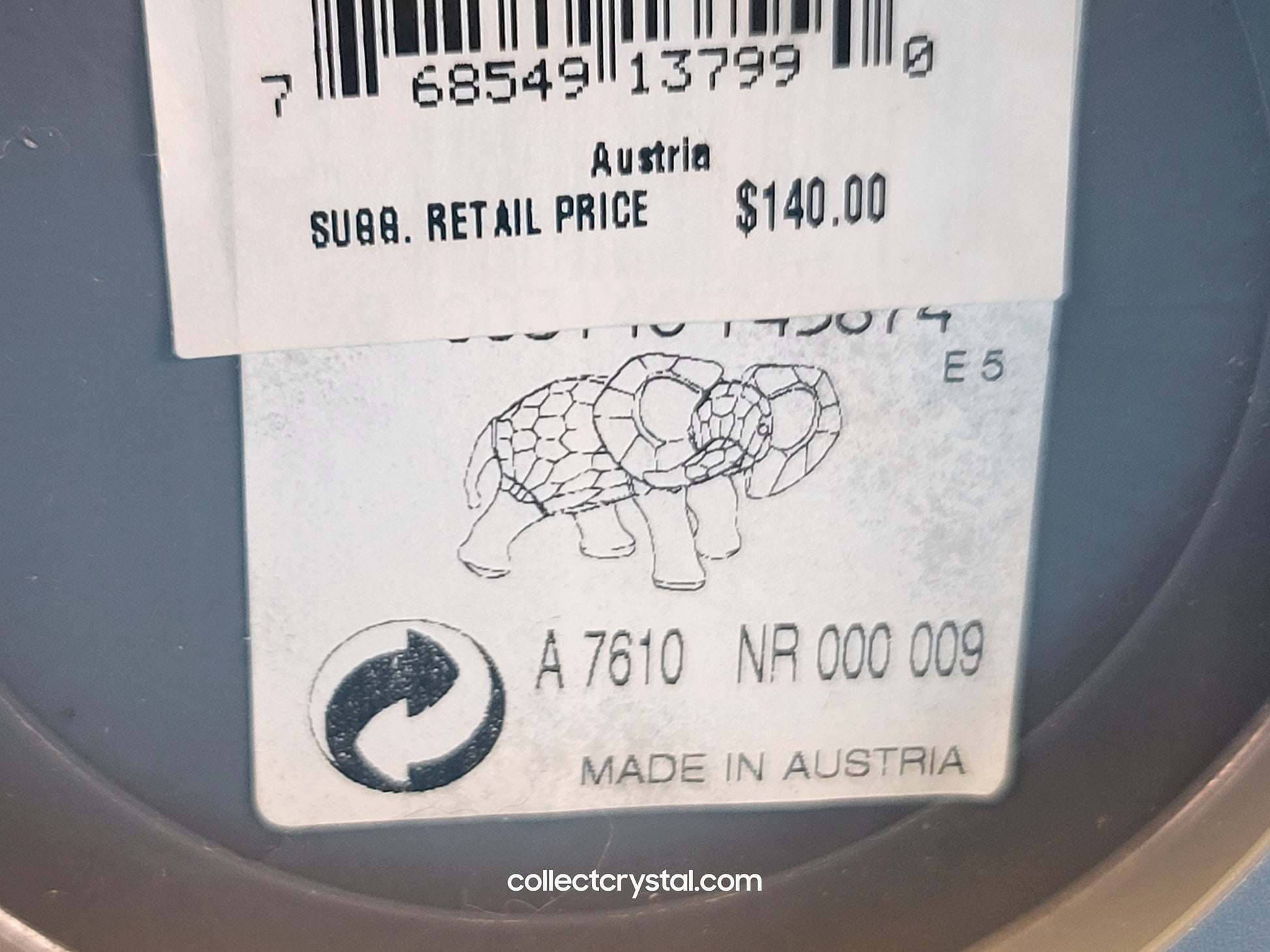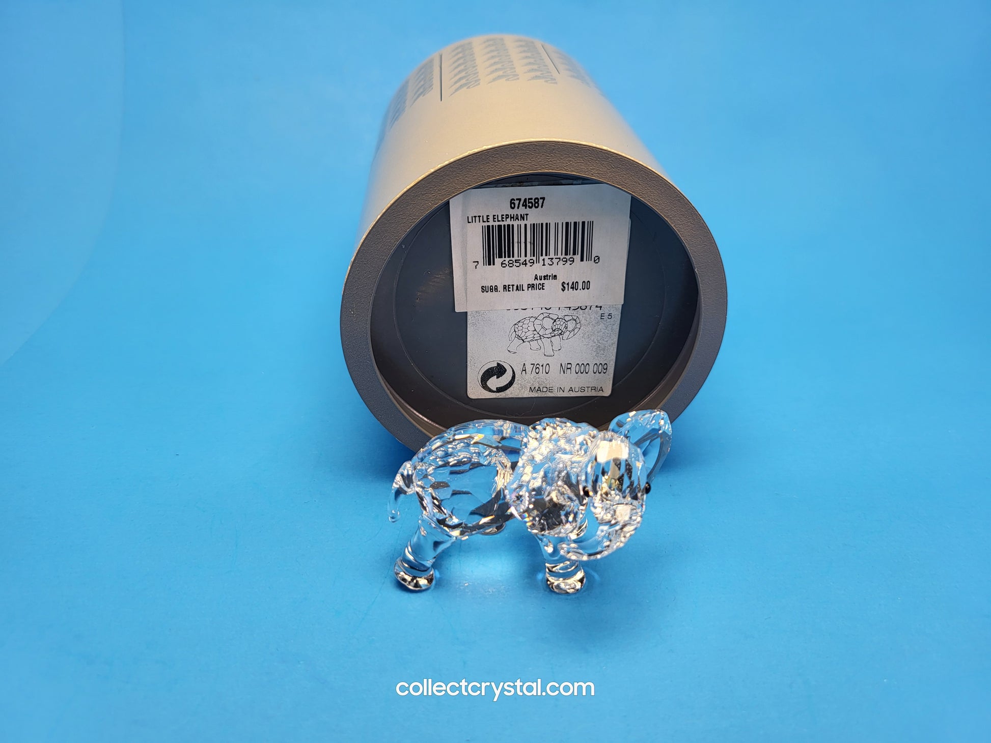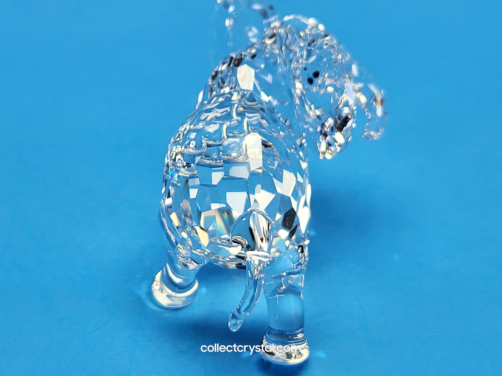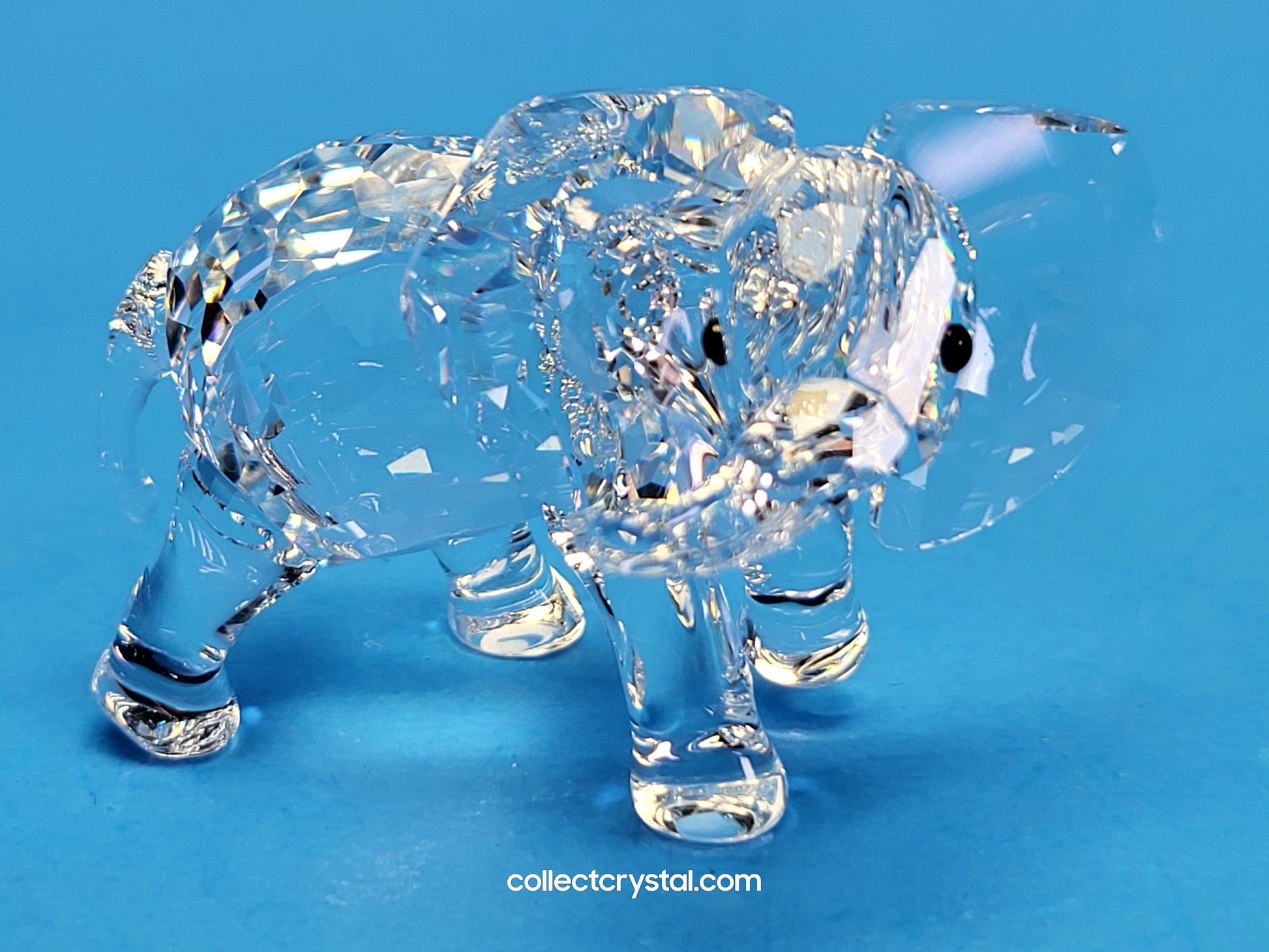 This retired Swarovski crystal elephant was part of the “Rare Encounters” group and is made from clear crystal, with black eyes.