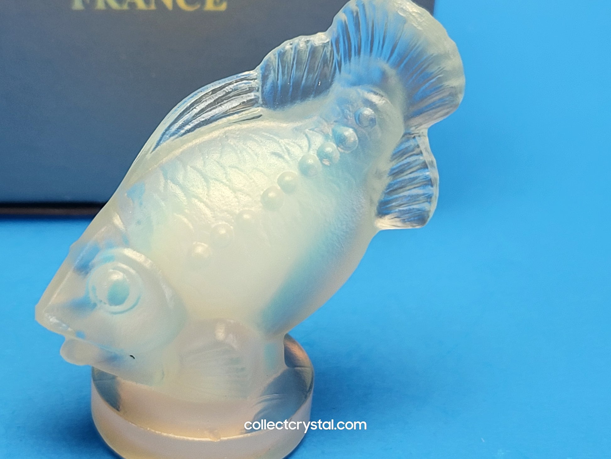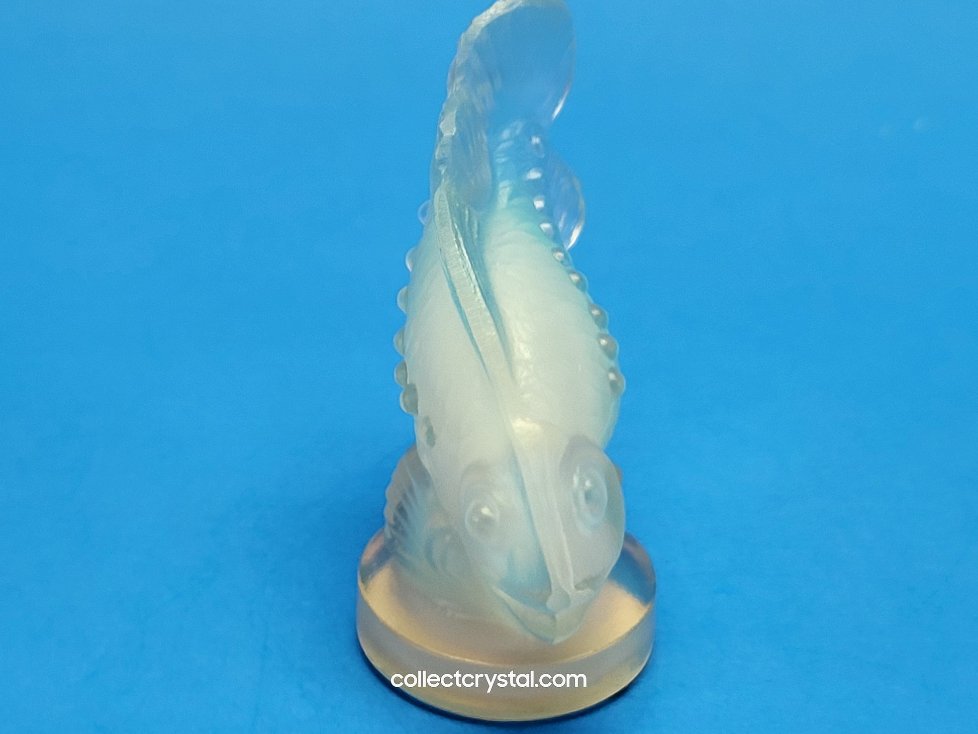 This exquisite Sabino fish figurine exemplifies the refined artistry of opalescent art glass. Standing at 2 inches tall, this delicate piece captures the graceful form of a fish with remarkable detail and craftsmanship. The opalescent glass creates a luminous quality, shifting subtly between soft hues as light plays across its surface—a hallmark of Sabino's celebrated technique. Perfect for collectors of fine art glass or as a sophisticated decorative accent, this miniature sculpture brings understated elegance to any display.