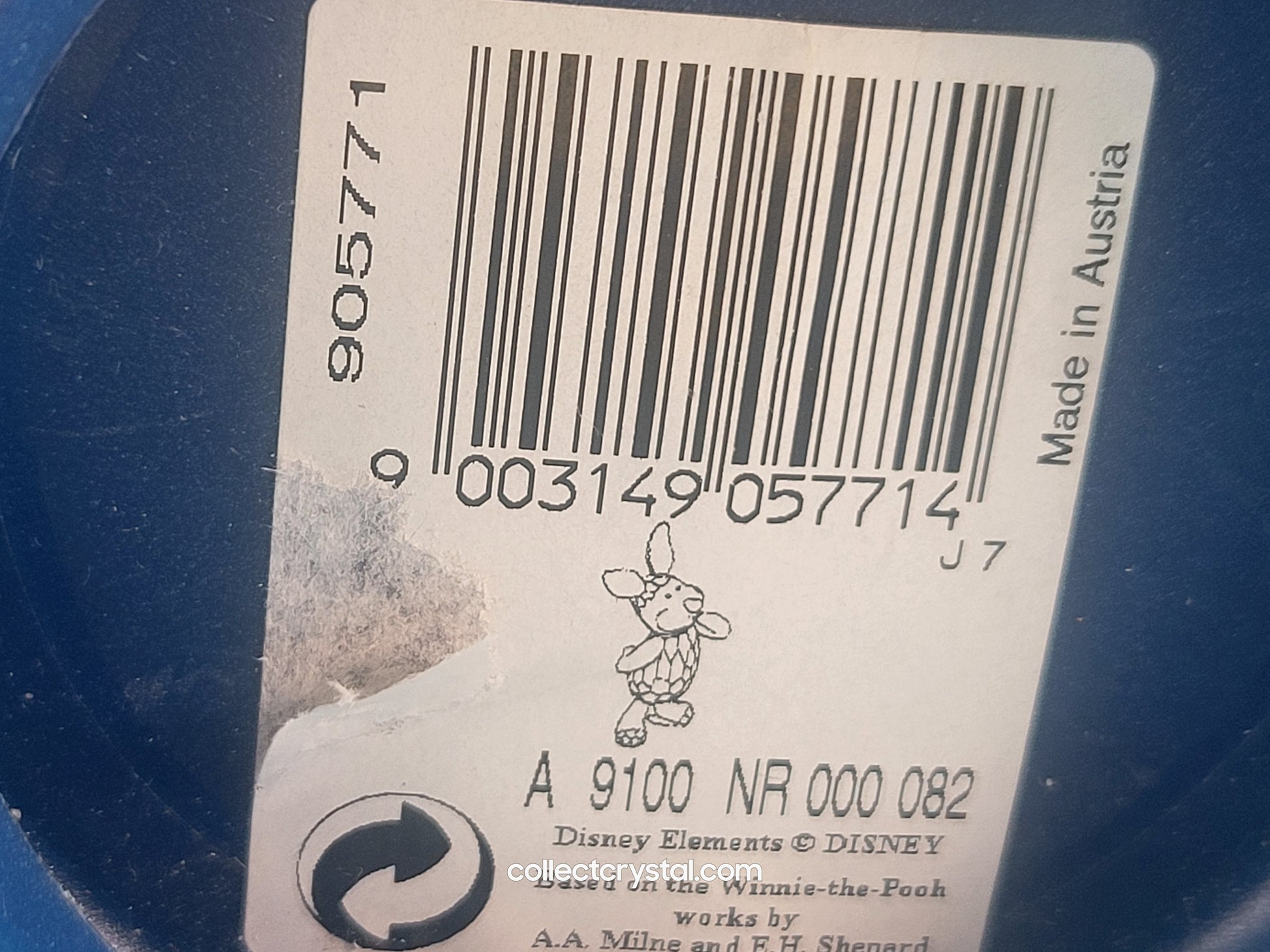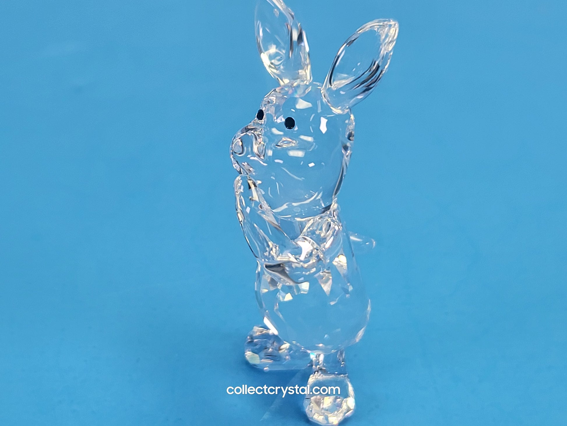 This retired Swarovski crystal Piglet bears the Swarovski’s swan logo and the Disney logo. Part of the “Winnie the Pooh” Disney series, Piglet is a shy, caring little soul. He has a faceted clear crystal body with unfaceted clear crystal arms and face with cute Jet crystal eyes. Based on the “Winnie the Pooh” works by A.A. Milne and E.H. Shepard.
