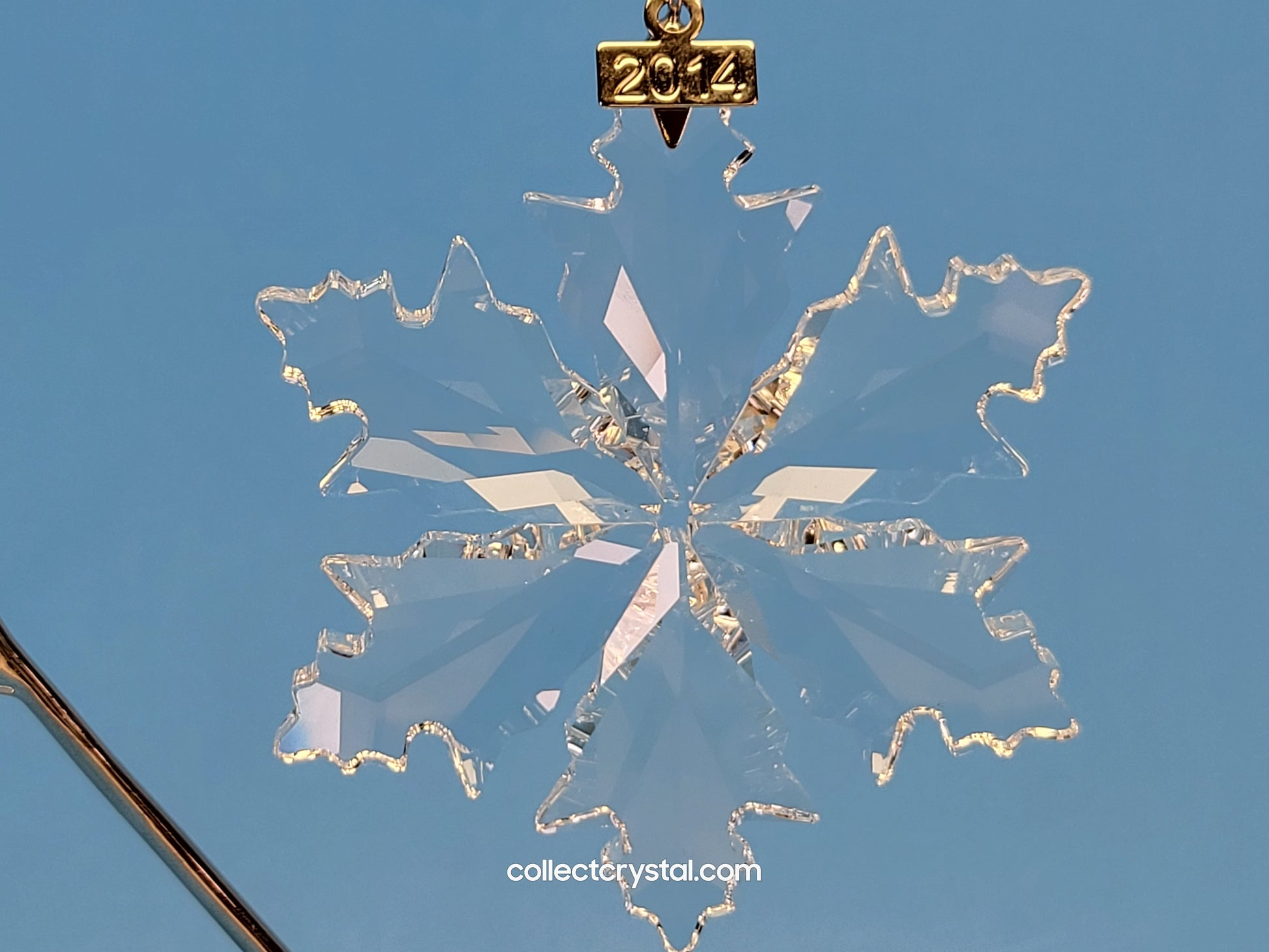Celebrate the holiday season with the Annual Edition 2014 Christmas Ornament. Shimmering in clear crystal, this beautiful snowflake features a metal tag showing the year of issue. It hangs on a white satin ribbon and was only available in 2014.