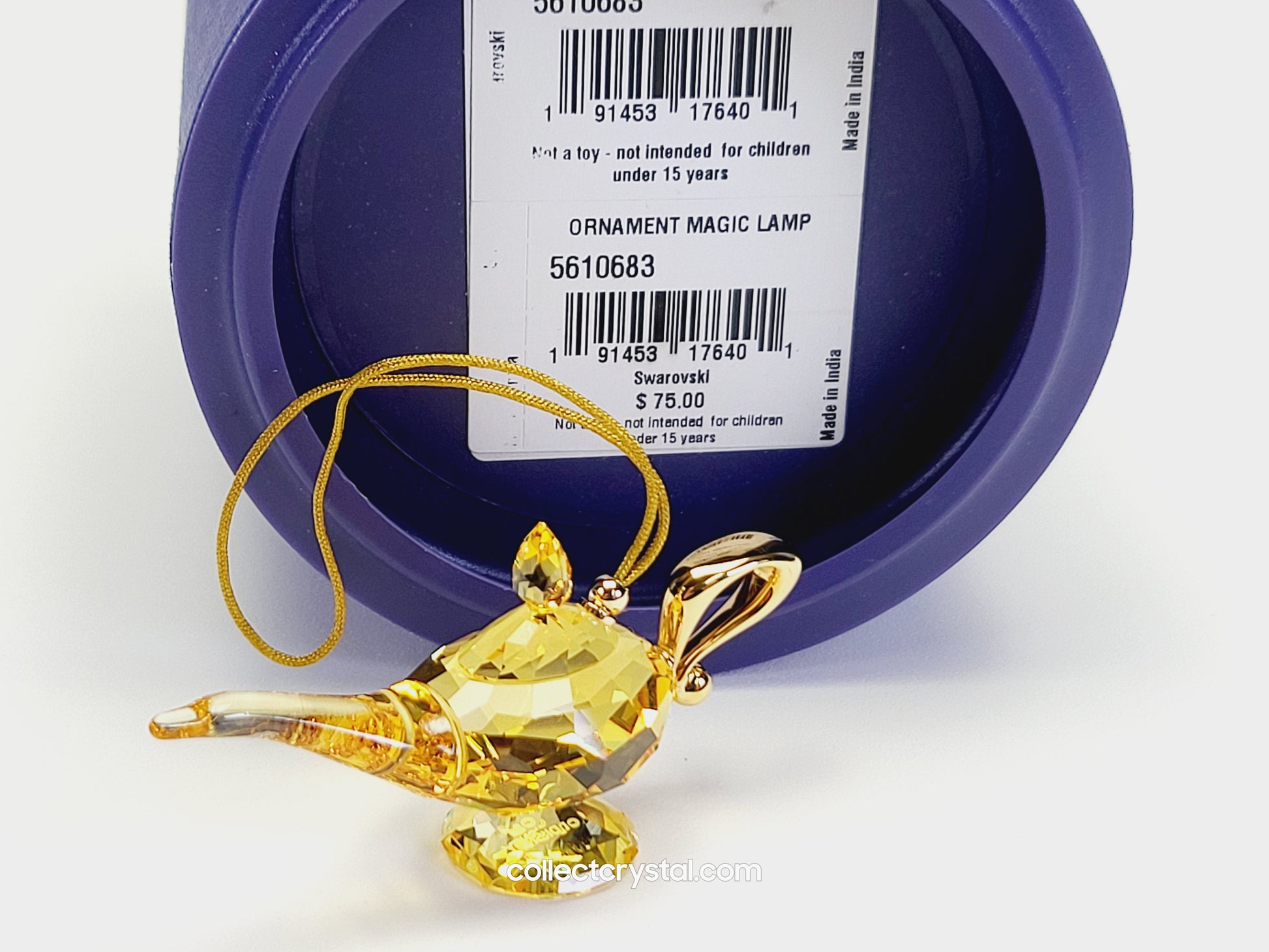 This detailed Magic Lamp ornament will delight any fans of Disney’s Aladdin. A dazzling reminder of life’s enchanting moments, it is crafted in 256 facets of yellow crystal with gold-tone metal decoration. The Magic Lamp hangs on a gold-tone cord.