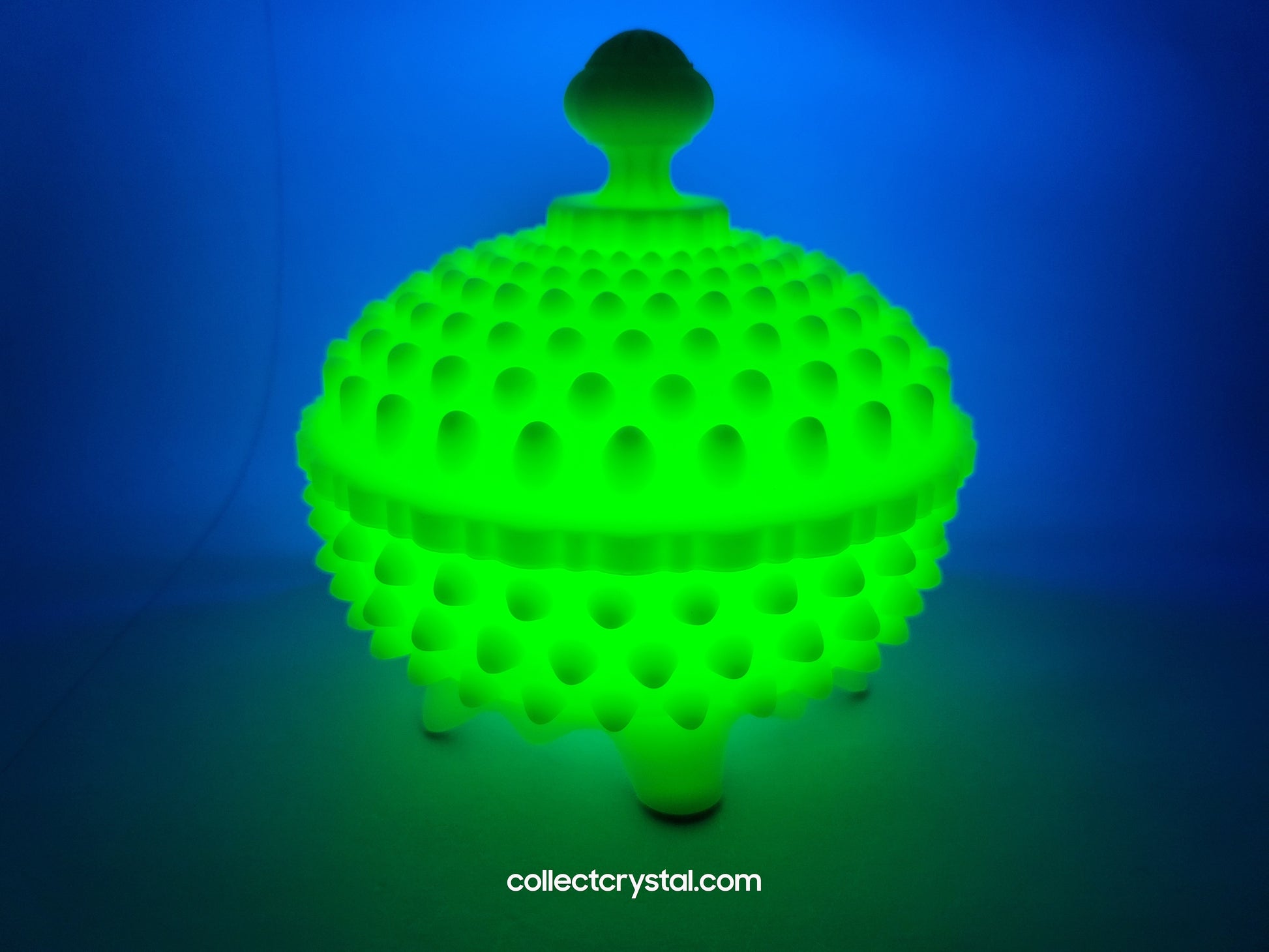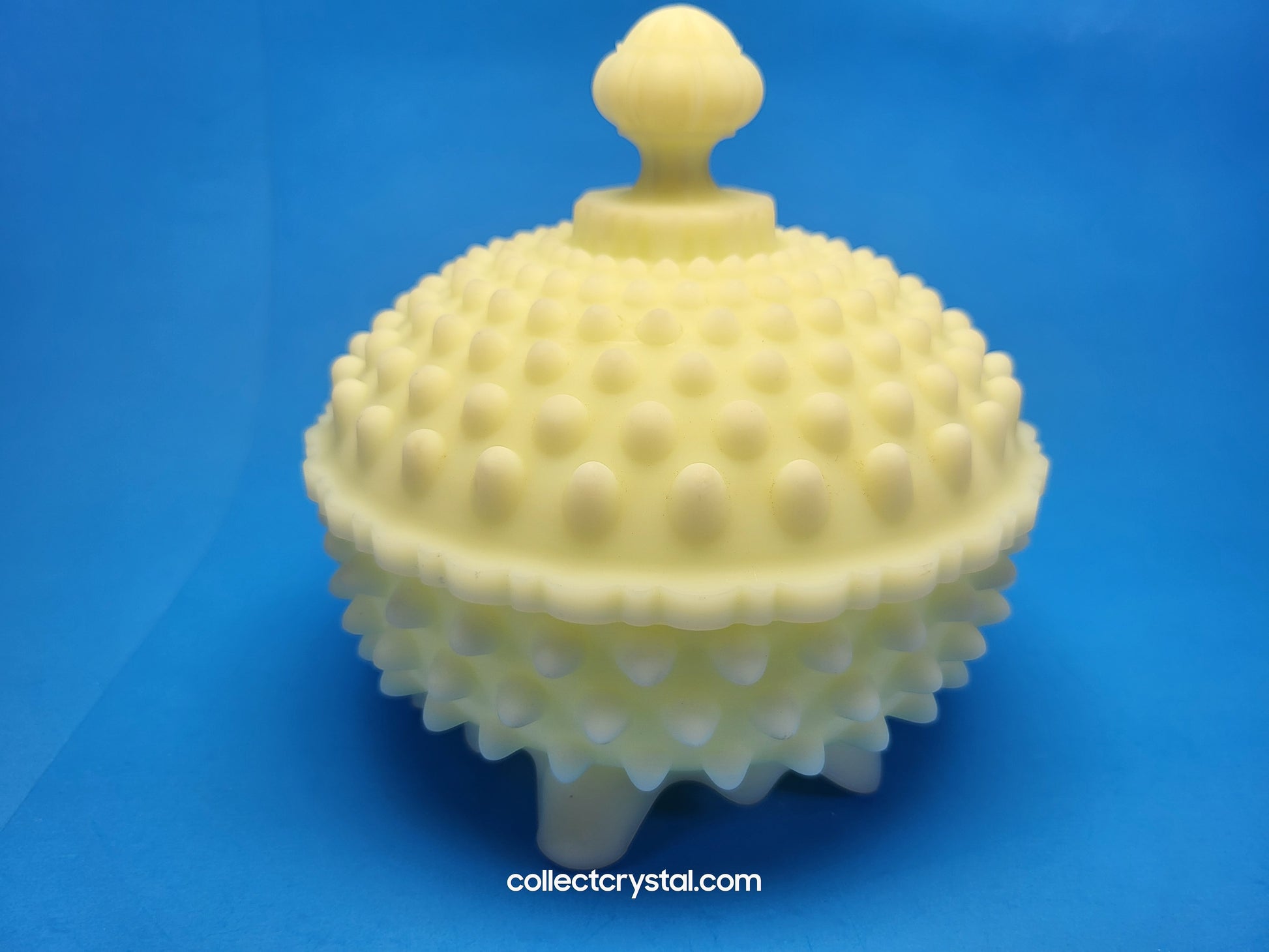 Fenton Custard Raised Hobnail covered Candy dish Uranium glass glows