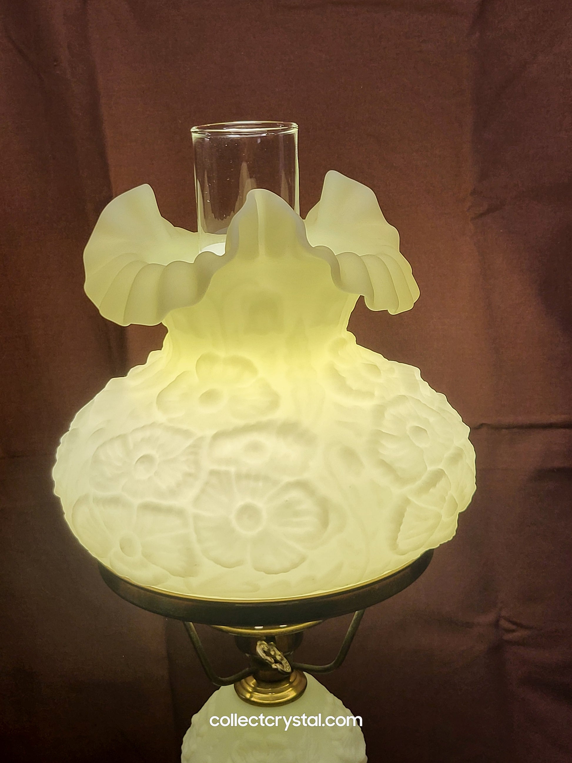 Fenton URANIUM Custard Poppy Student Lamp With Marble Base 20 Inches