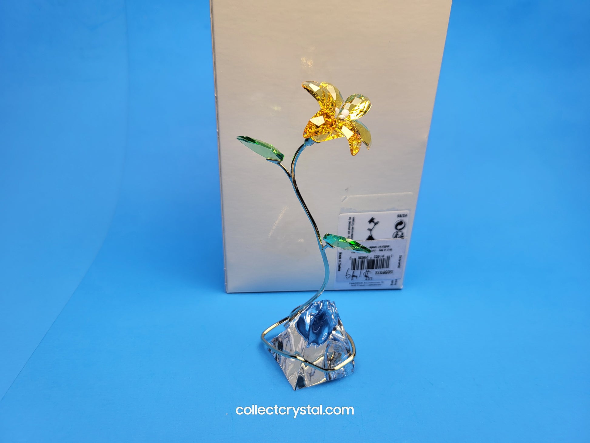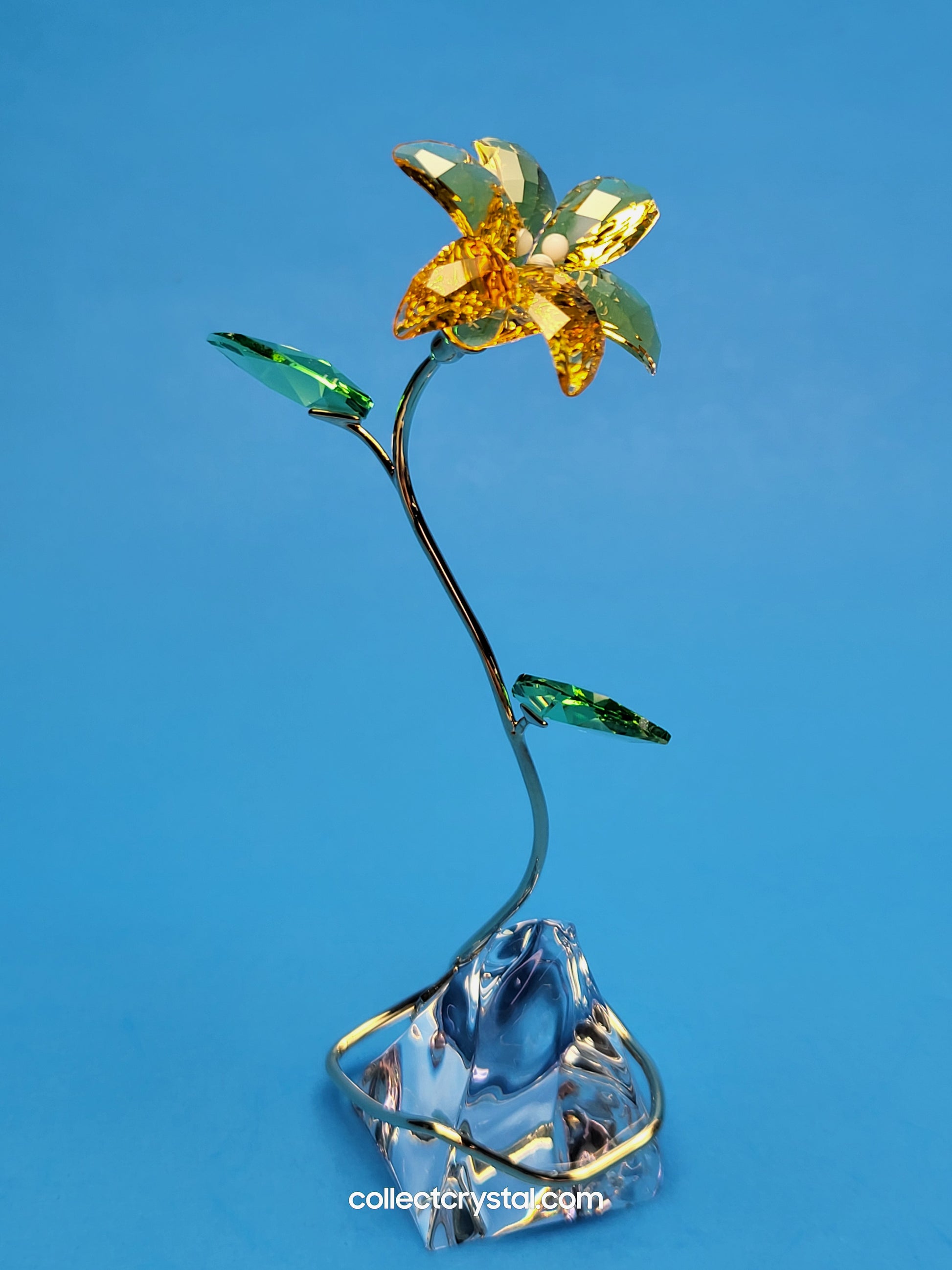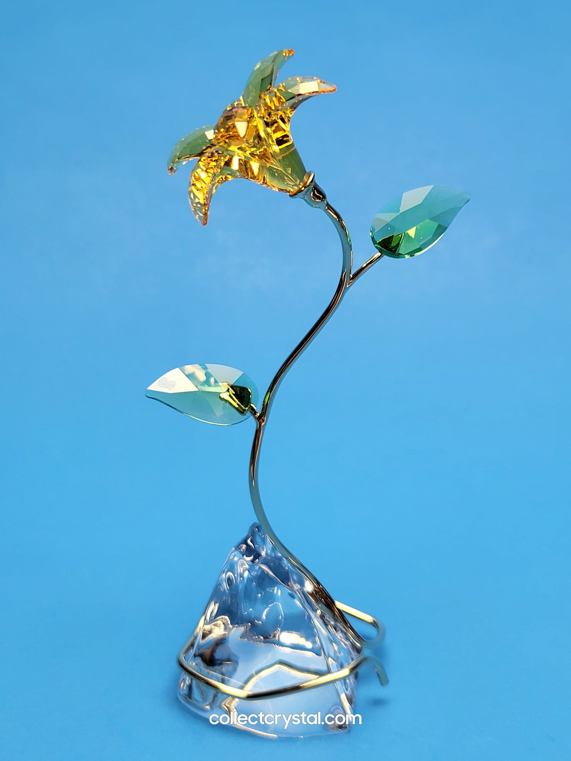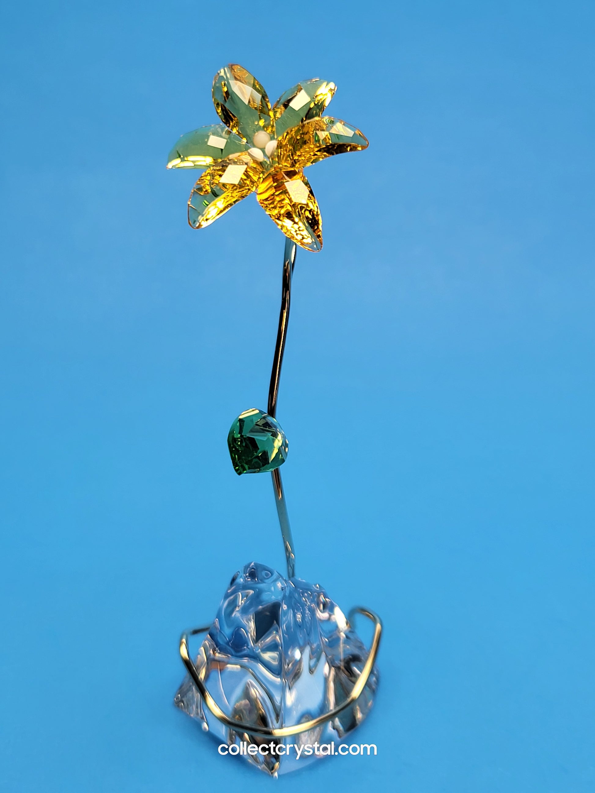 This radiant lily perfectly encapsulates Swarovski’s savoir-faire. Produced with 222 light-catching facets, the yellow flower is accompanied by green crystallised leaves, all set on a gold-tone metal stem that gracefully entwines across a natural unfaceted crystal base. Representing purity and innocence, this freestanding design would make a truly elegant addition to any home décor. No vase or base required.