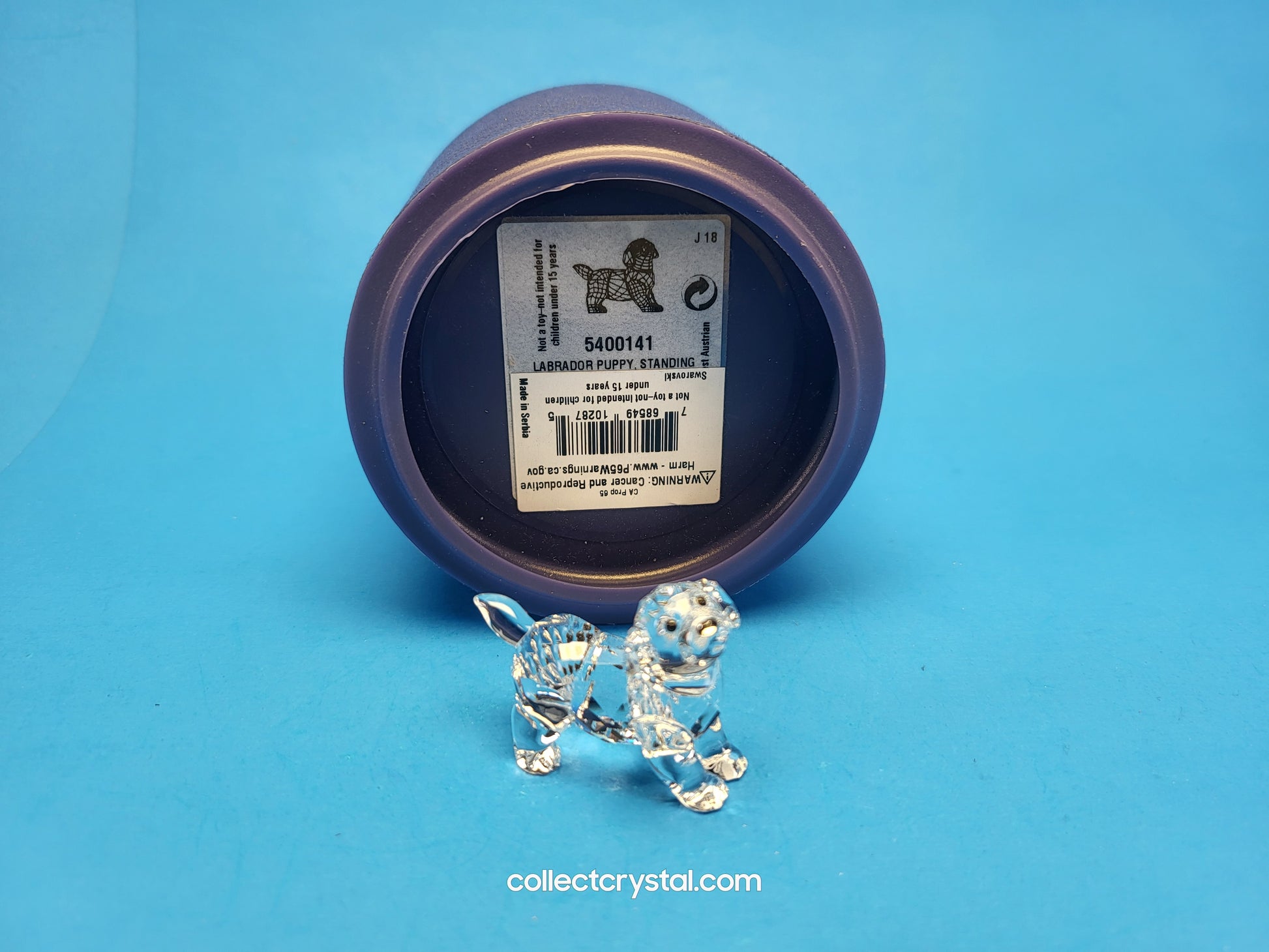 This charming depiction of a Labrador Puppy, Standing is certain to capture your heart. With its head up and tail in an upright position, it looks adorable and playful. Sparkling in clear crystal with black crystal eyes and nose, it has been expertly crafted with 388 facets. A must have piece for collectors and dog lovers alike. Display alongside Labrador Mother and Labrador Puppy, Playing to create a poignant family scene. A member of The Peaceful Countryside collection.