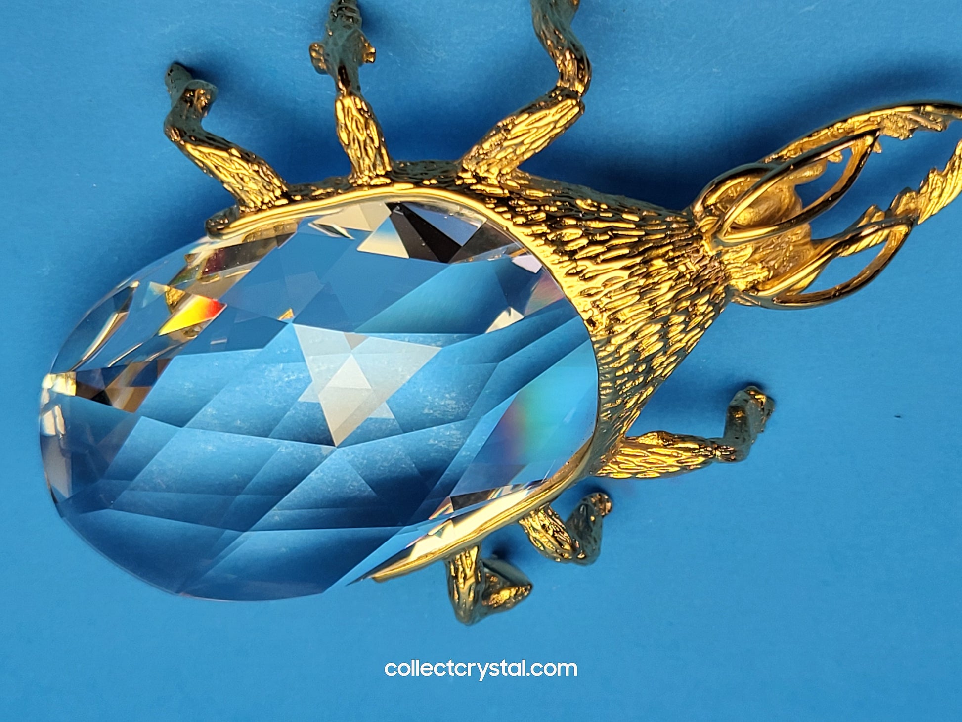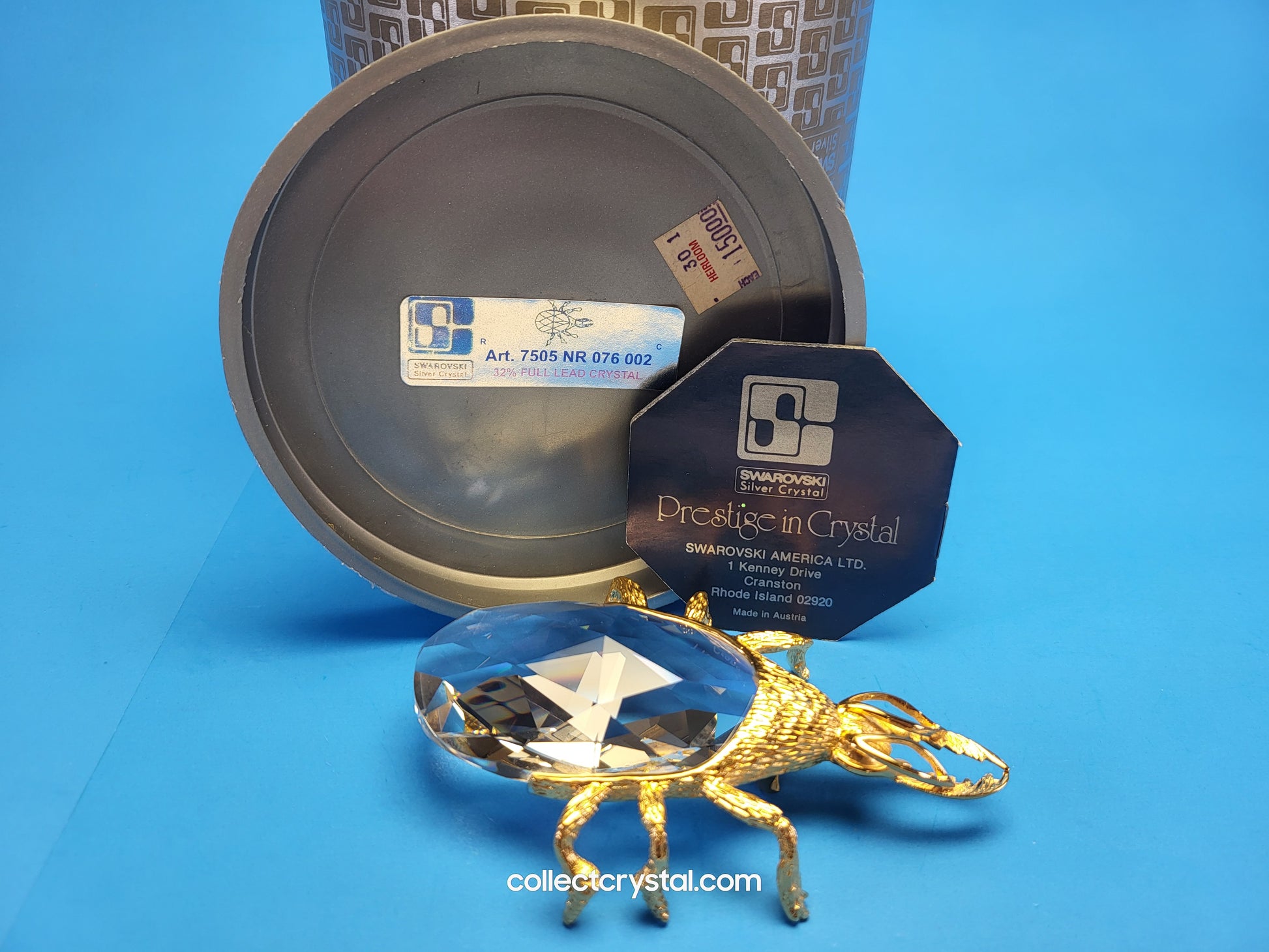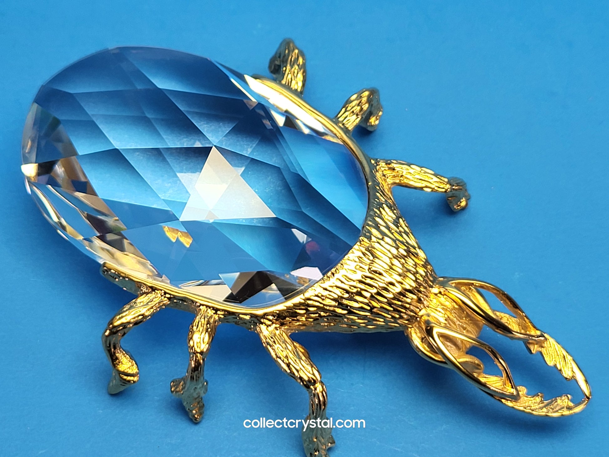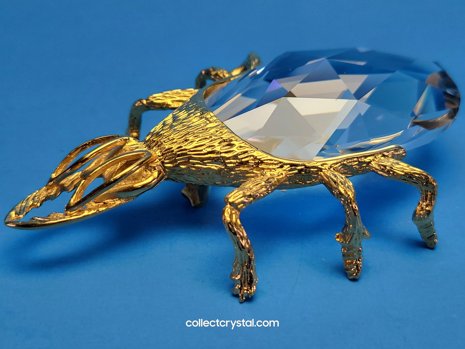 This is the retired Swarovski crystal gold beetle bottle opener which has a smooth finish to the metal. The crystal stone which makes up the main body of the beetle is not interchangeable between var 1 and var 2 of the design. The easy way to tell the variations apart is to look at the metal finish where the legs join the body. Var 1 has a smooth finish, while var 2 is rougher/hairier.