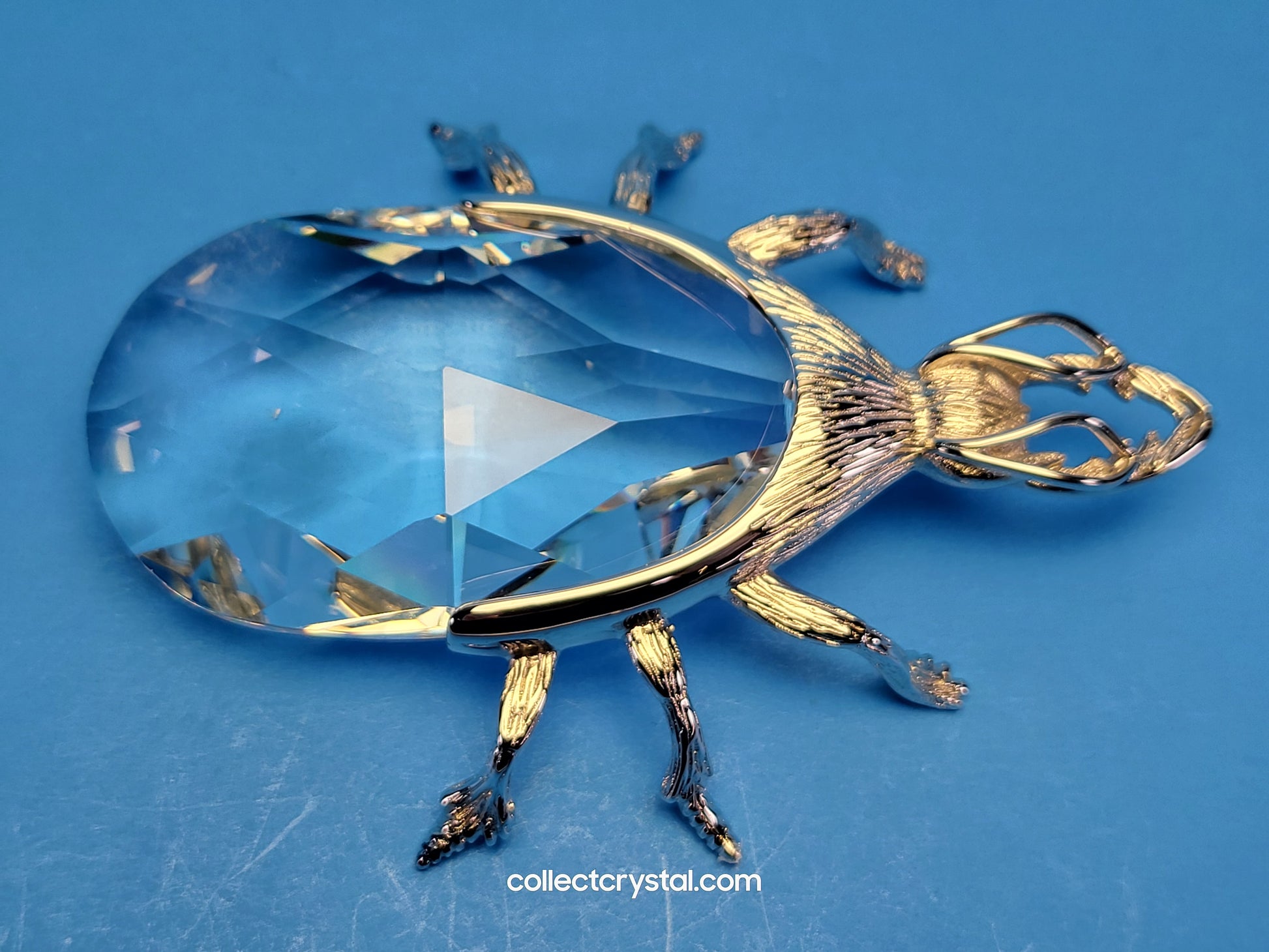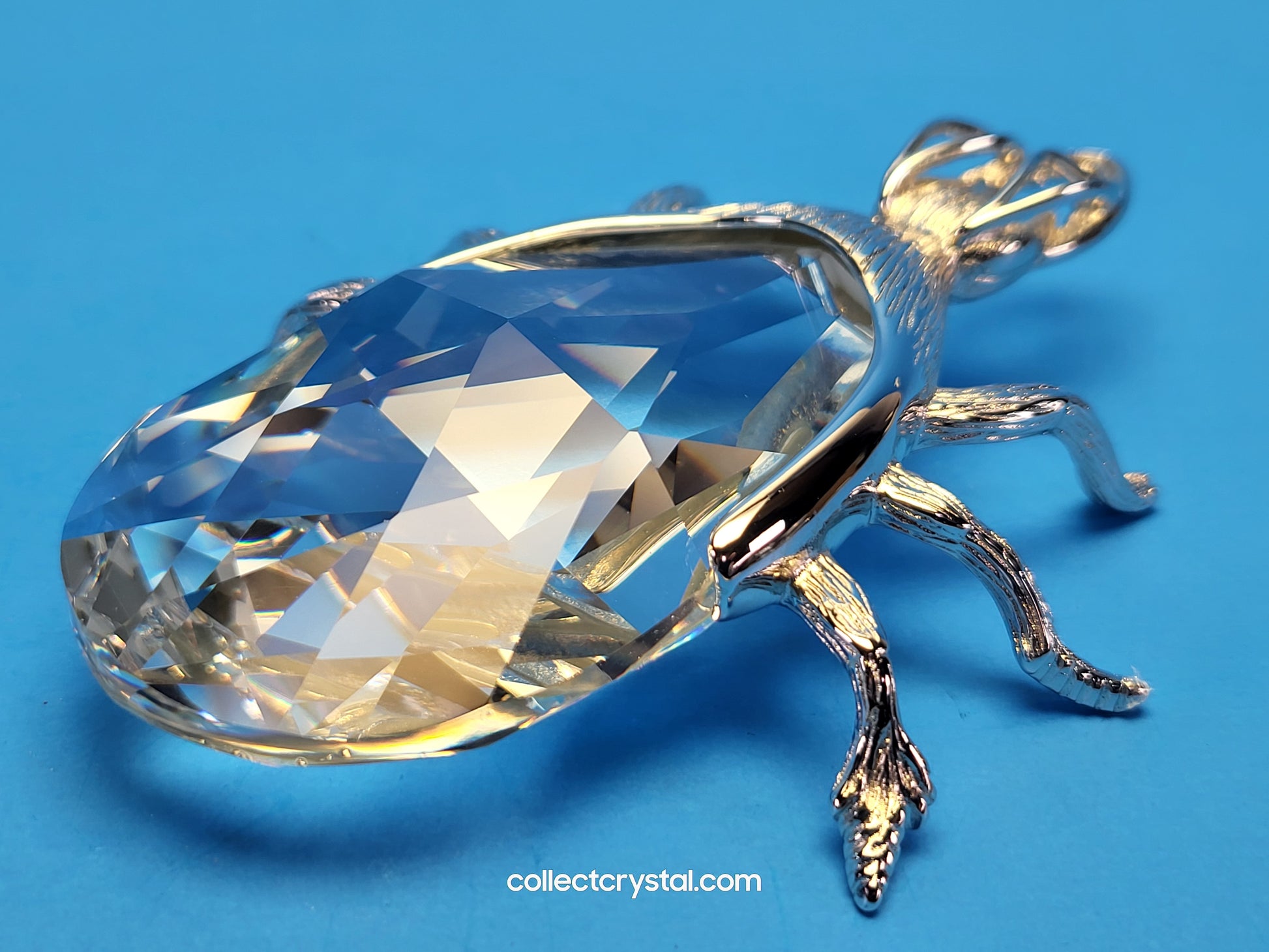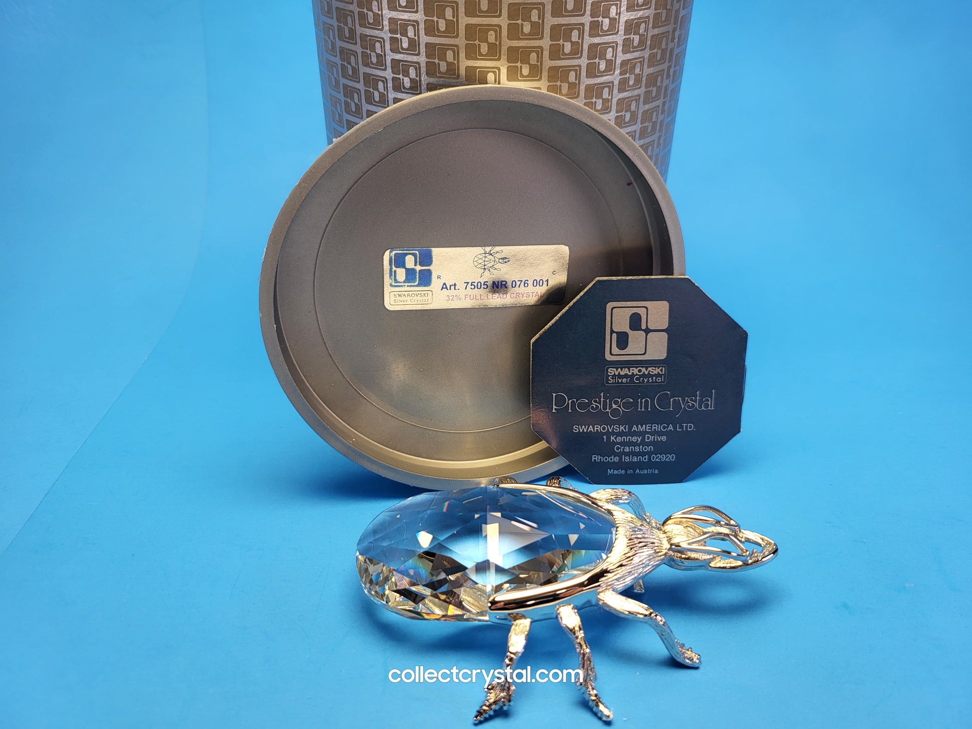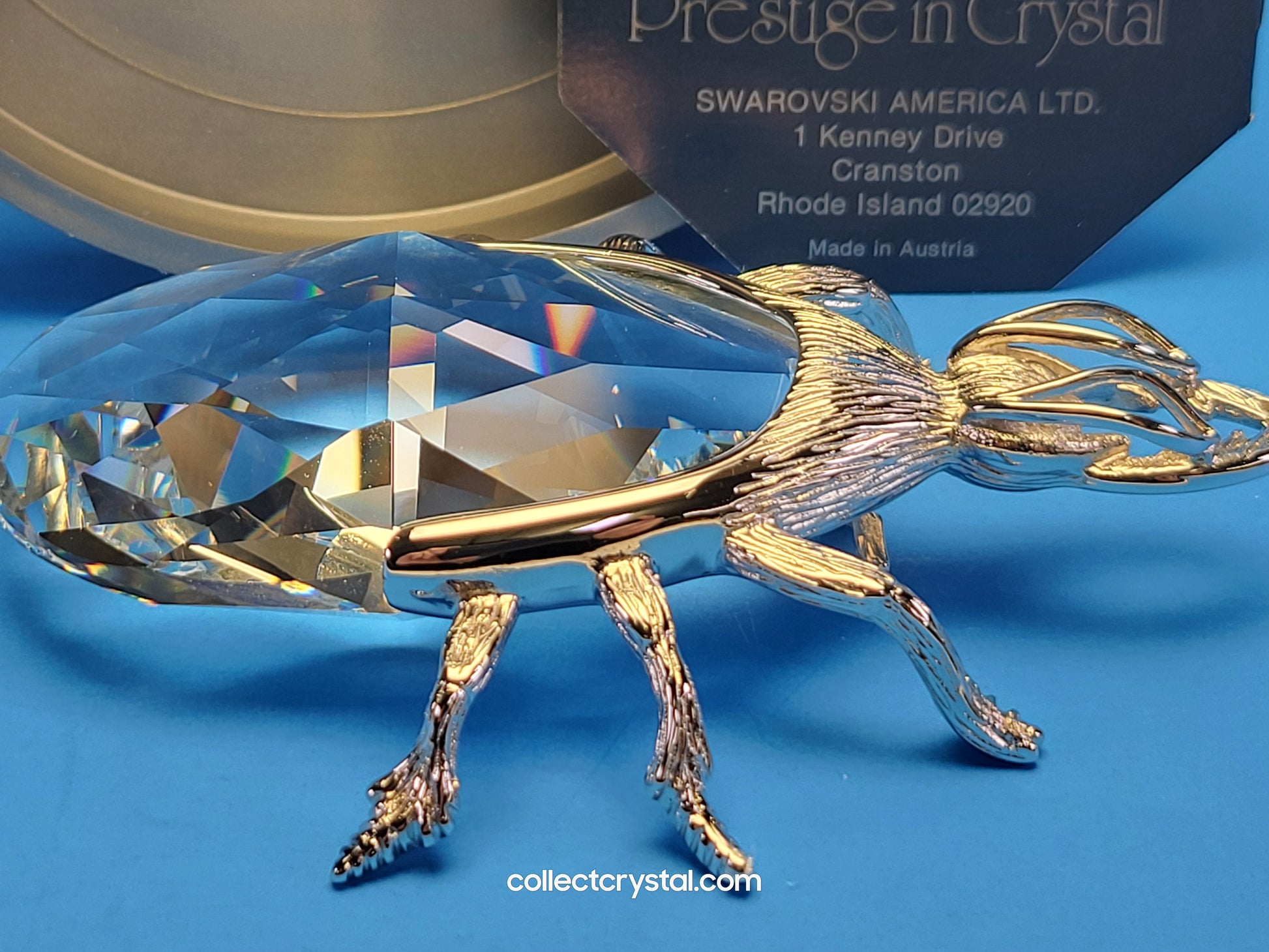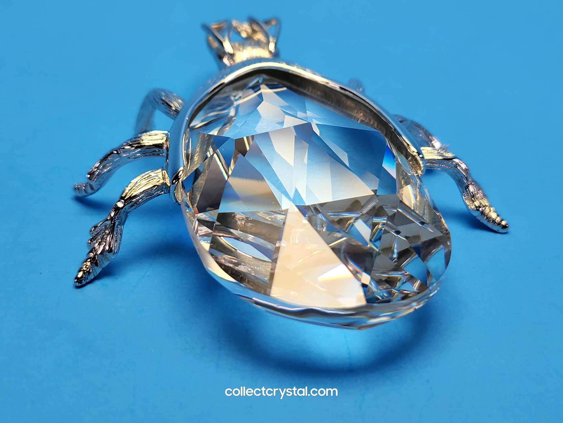 This is the retired Swarovski crystal rhodium beetle bottle opener which has a smooth finish to the metal. The crystal stone which makes up the main body of the beetle is not interchangeable between var 1 and var 2 of the design. The easy way to tell the variations apart is to look at the metal finish where the legs join the body. Var 1 has a smooth finish, while var 2 is rougher/hairier.