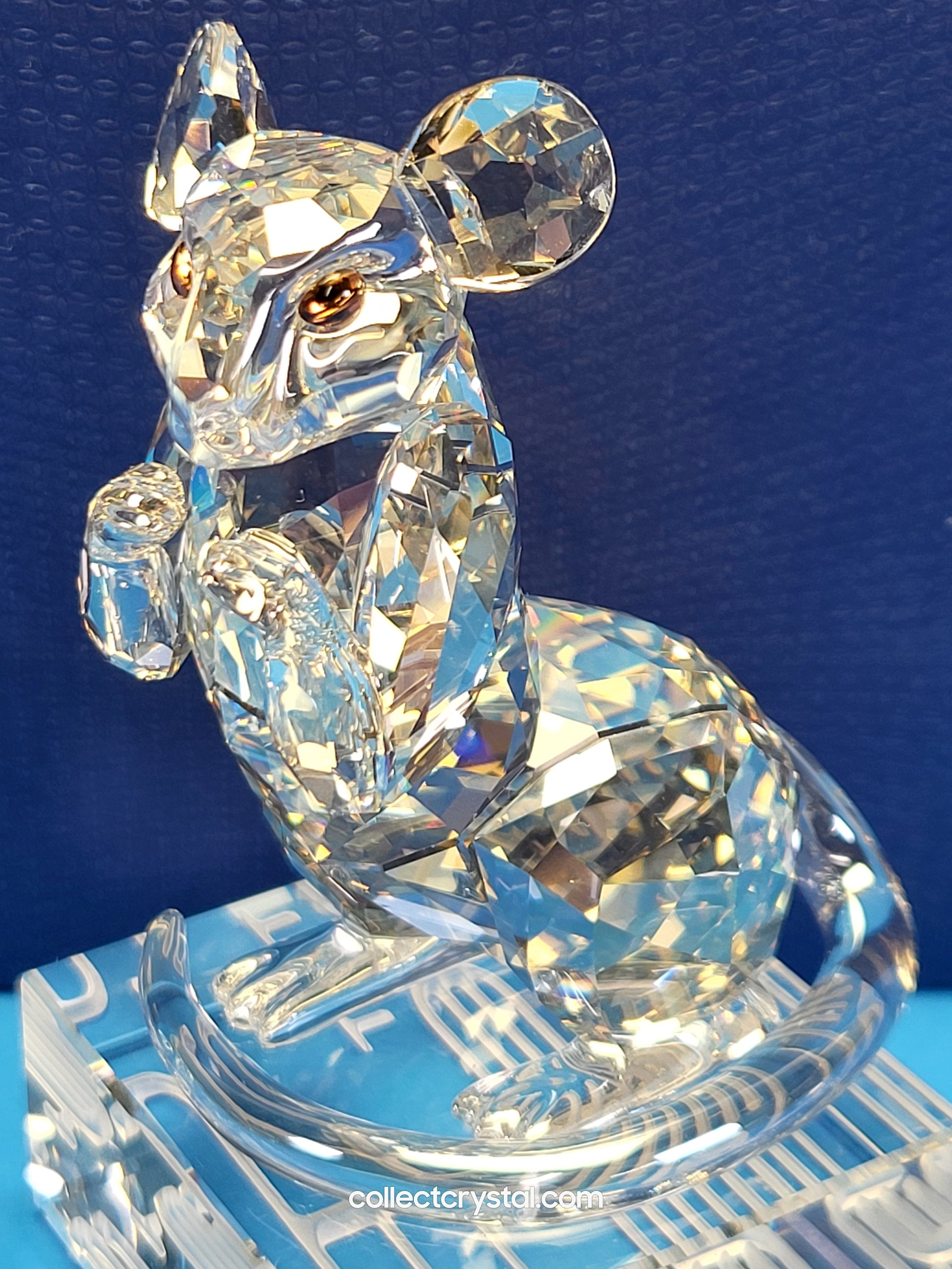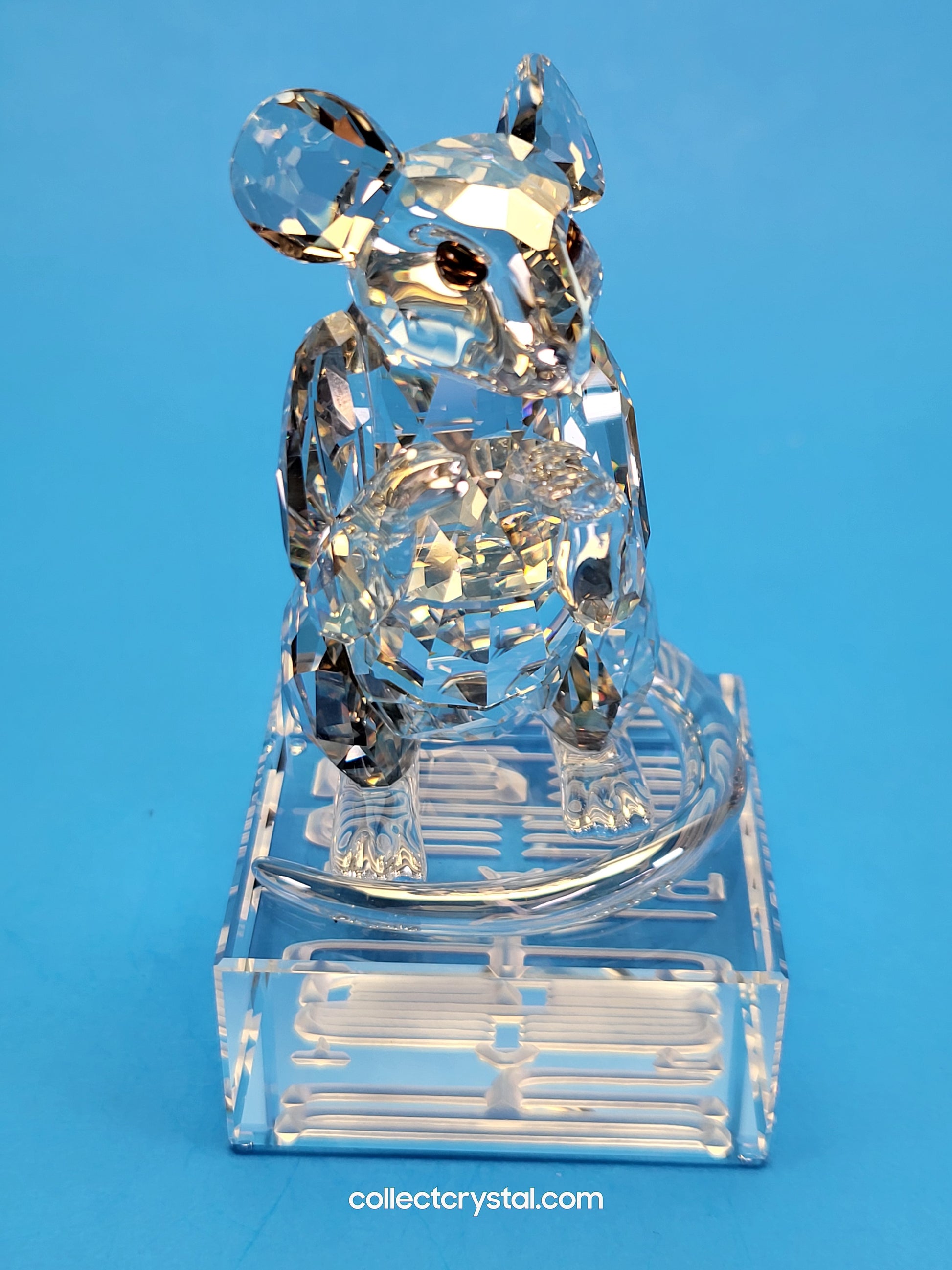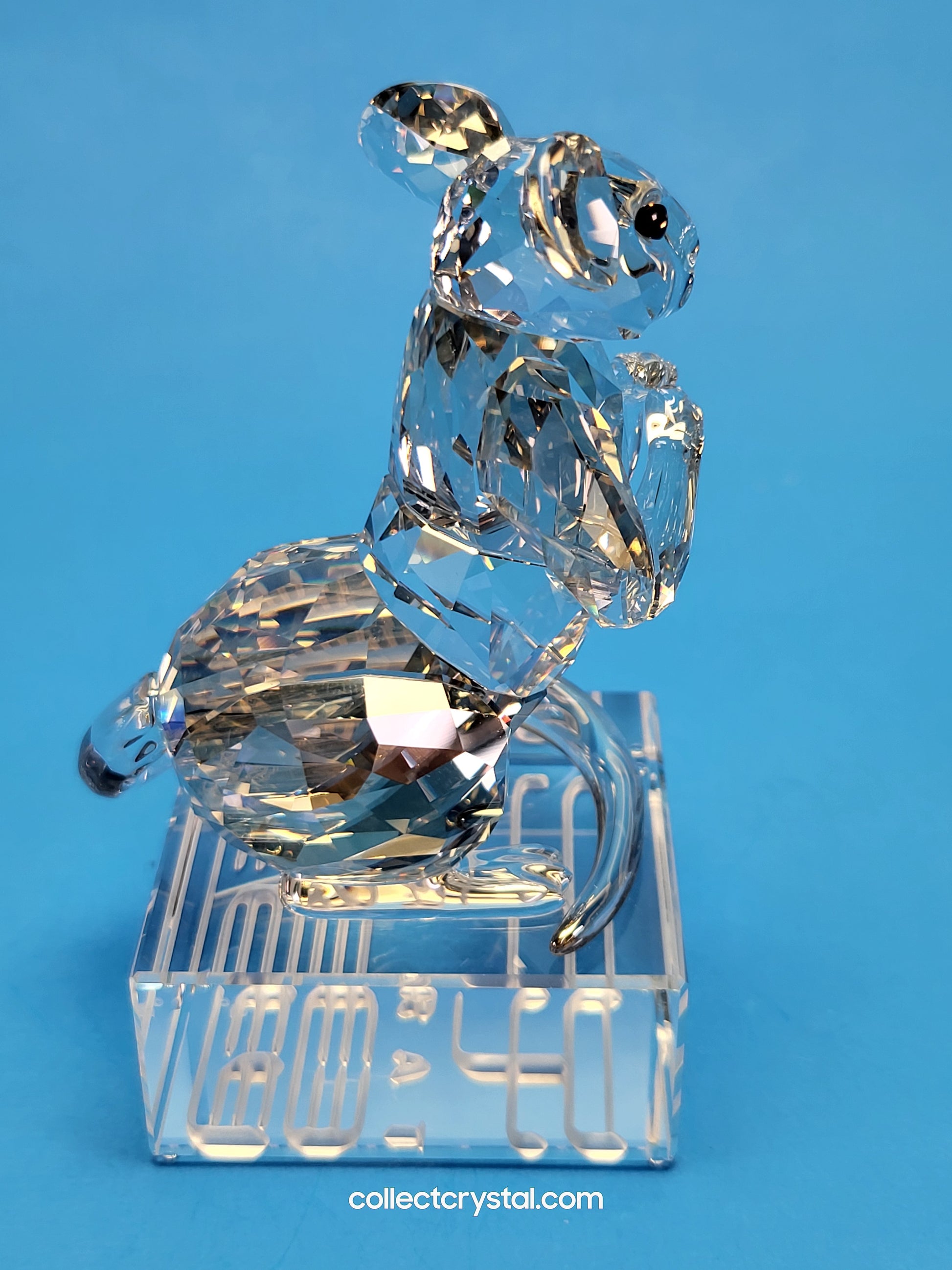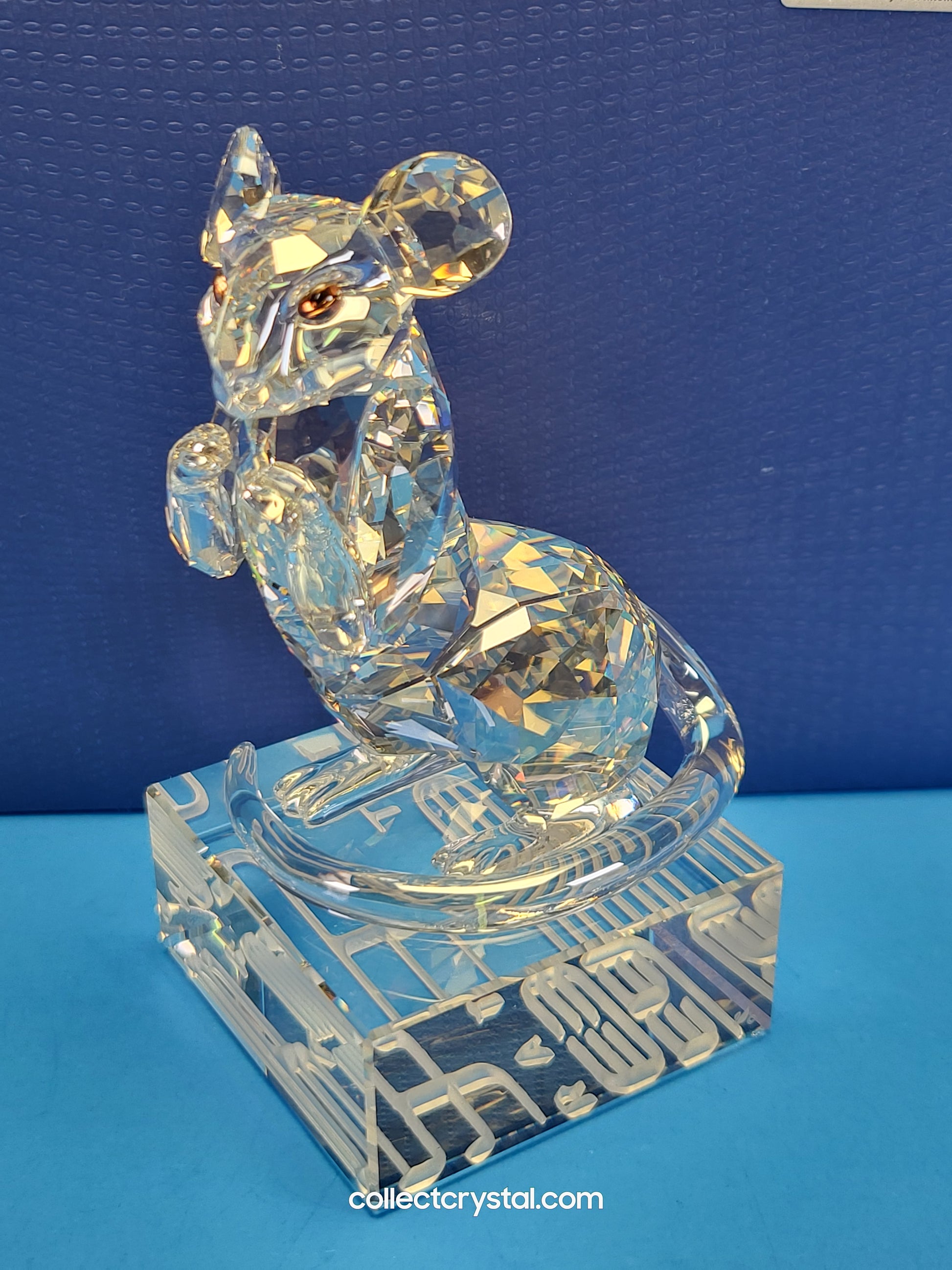 As a Zodiac sign, the Rat represents intelligence, charm and prosperity. This beautifully crafted interpretation shines in Crystal Silver Shade with Light Smoked Topaz crystal eyes and Moroda crystal pupils. The name of the Zodiac is engraved on the faceted clear crystal base in English and Traditional Chinese seal script.