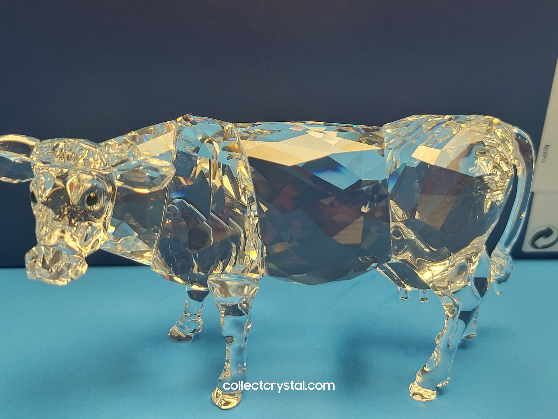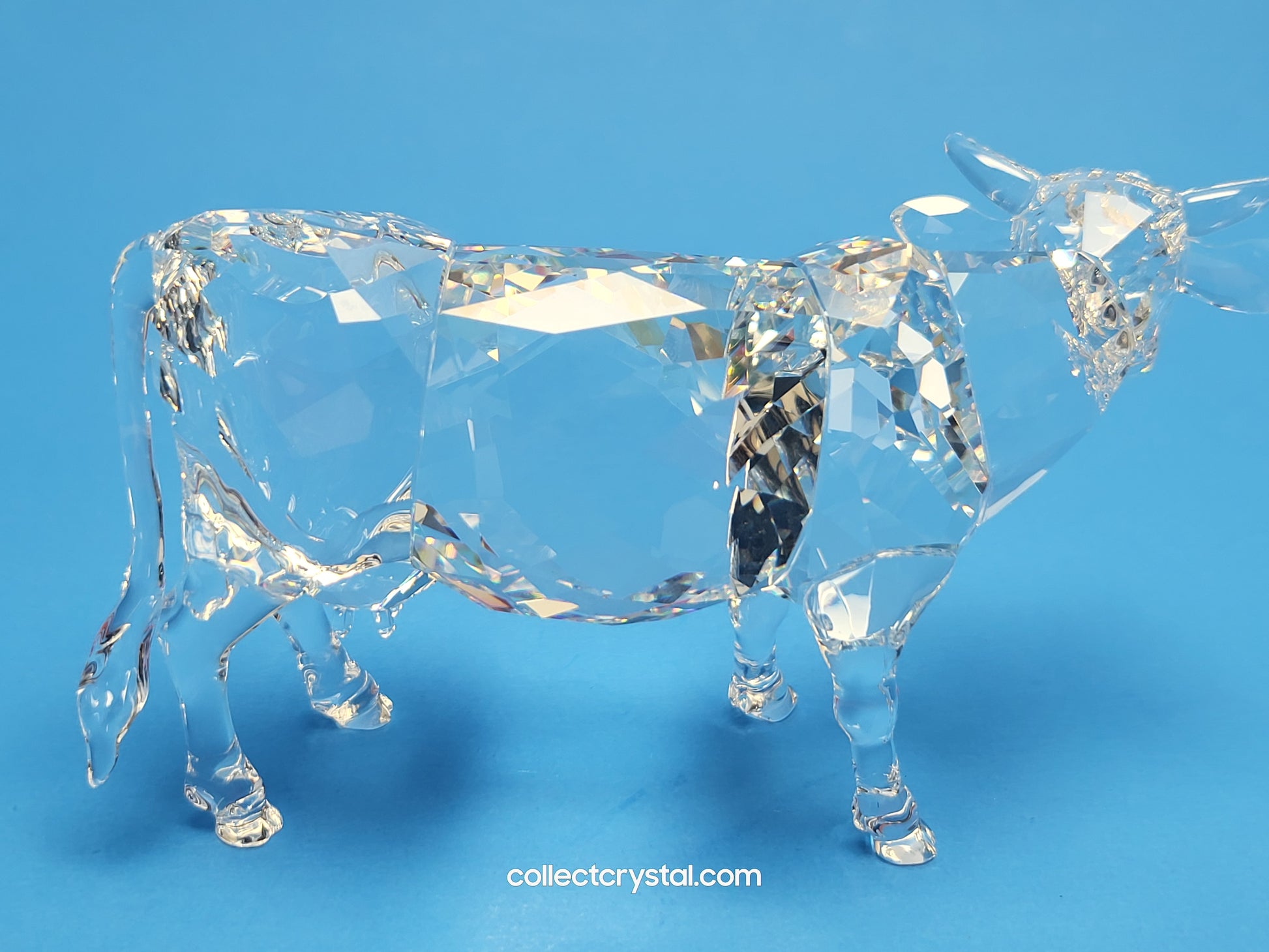 This retired Swarovski crystal cow moos across the meadows. Bring in your own cow in faceted clear crystal with horns, tail and legs in unfaceted clear crystal. Watch her Jet crystal eyes look out for her calf. Mother and child – team them up for a complete feeling of peace.