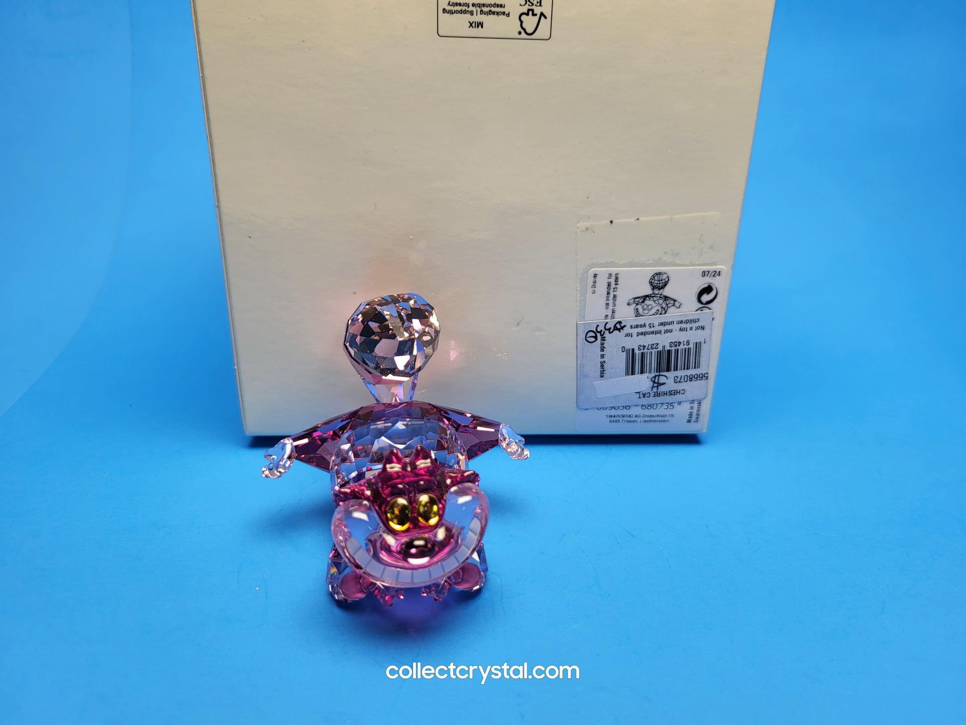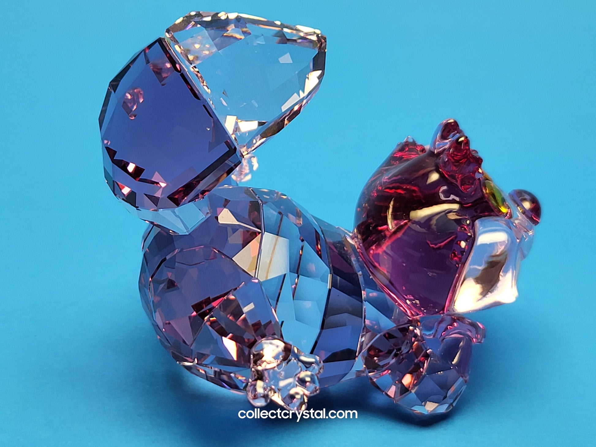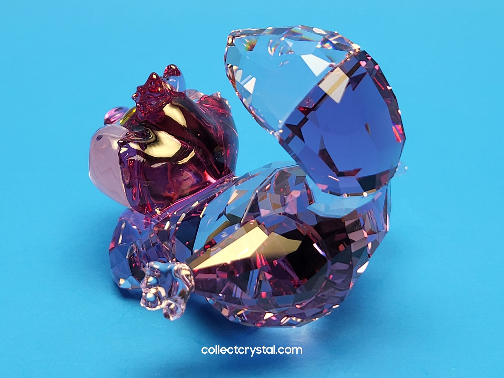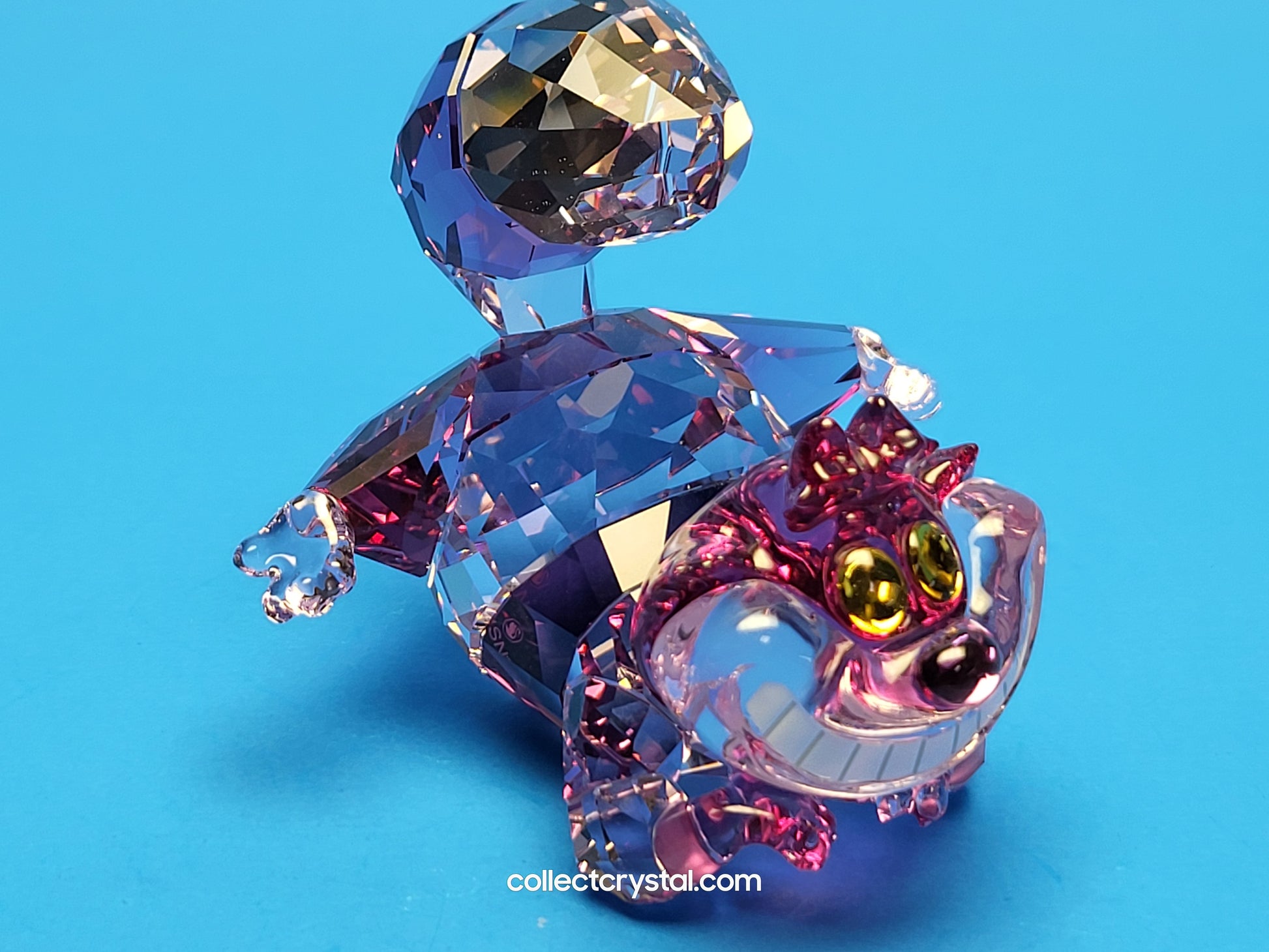 Take your own playful journey with a little inspiration from Alice in Wonderland, the classic Disney tale. This vibrant Cheshire Cat figurine grins from ear to ear, and thanks to Swarovski’s masterful savoir-faire, he appears to be almost floating, as if about to disappear. The crystallised design is expertly crafted with 536 facets and reveals an alluring array of pink and purple tones. A piece for your home that will always make you smile.