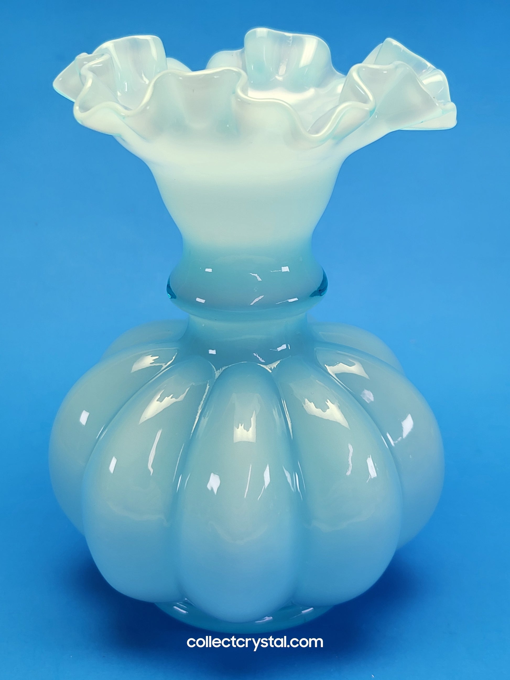 Fenton Blue opalescent Ruffled Melon Rib 6" Vase