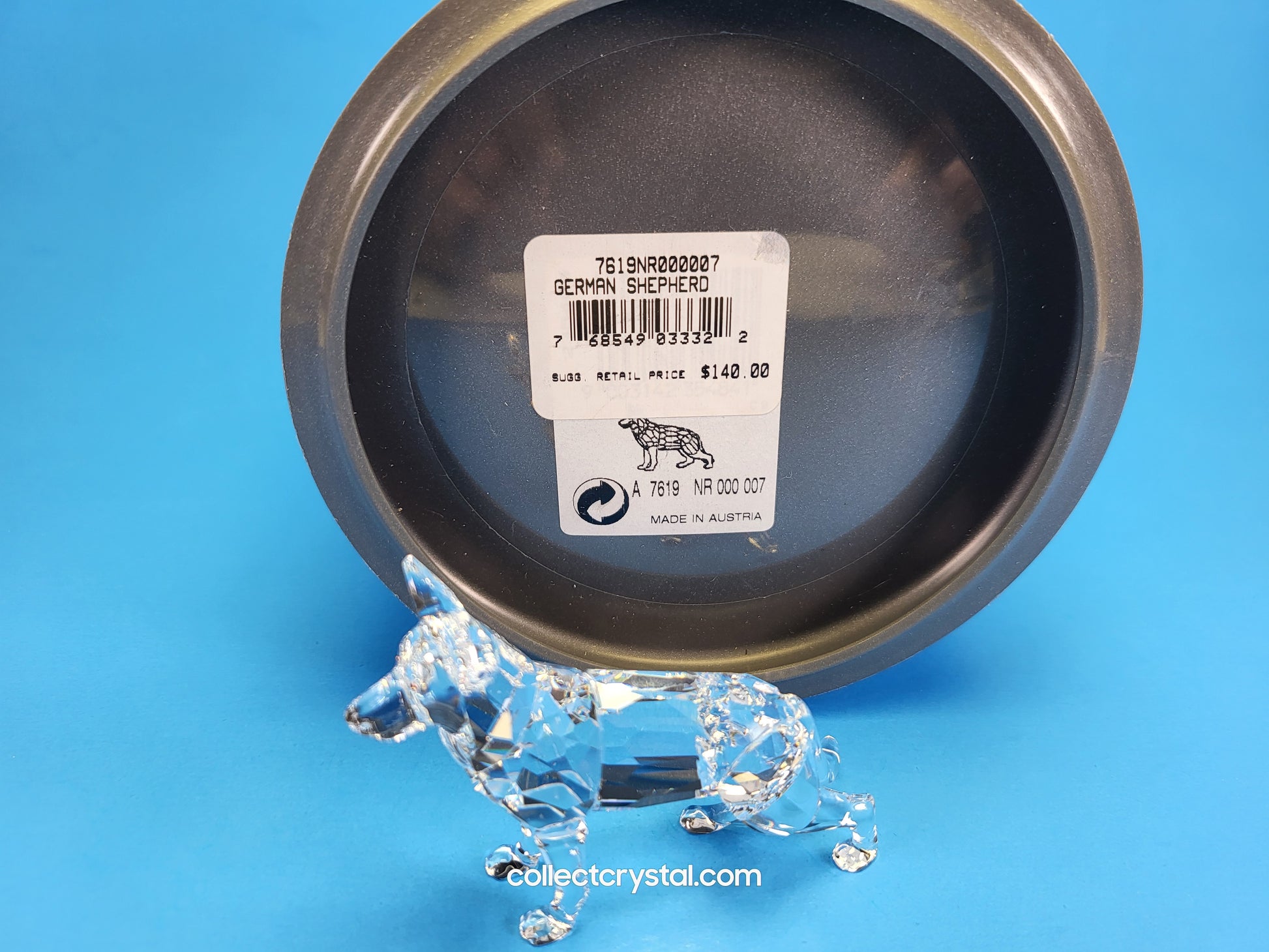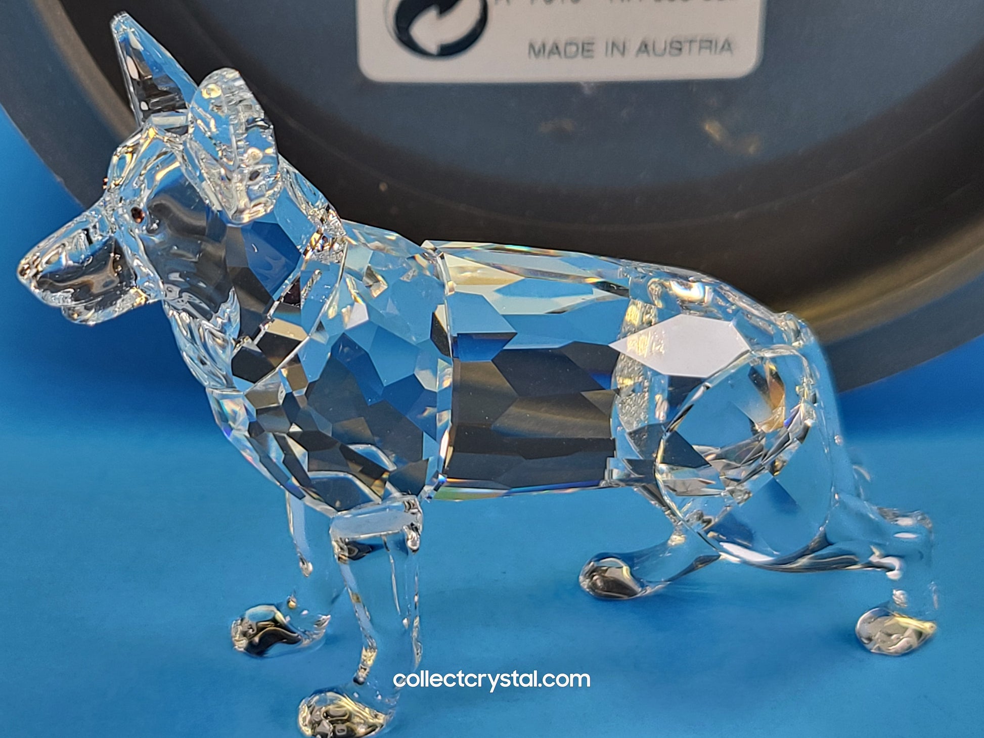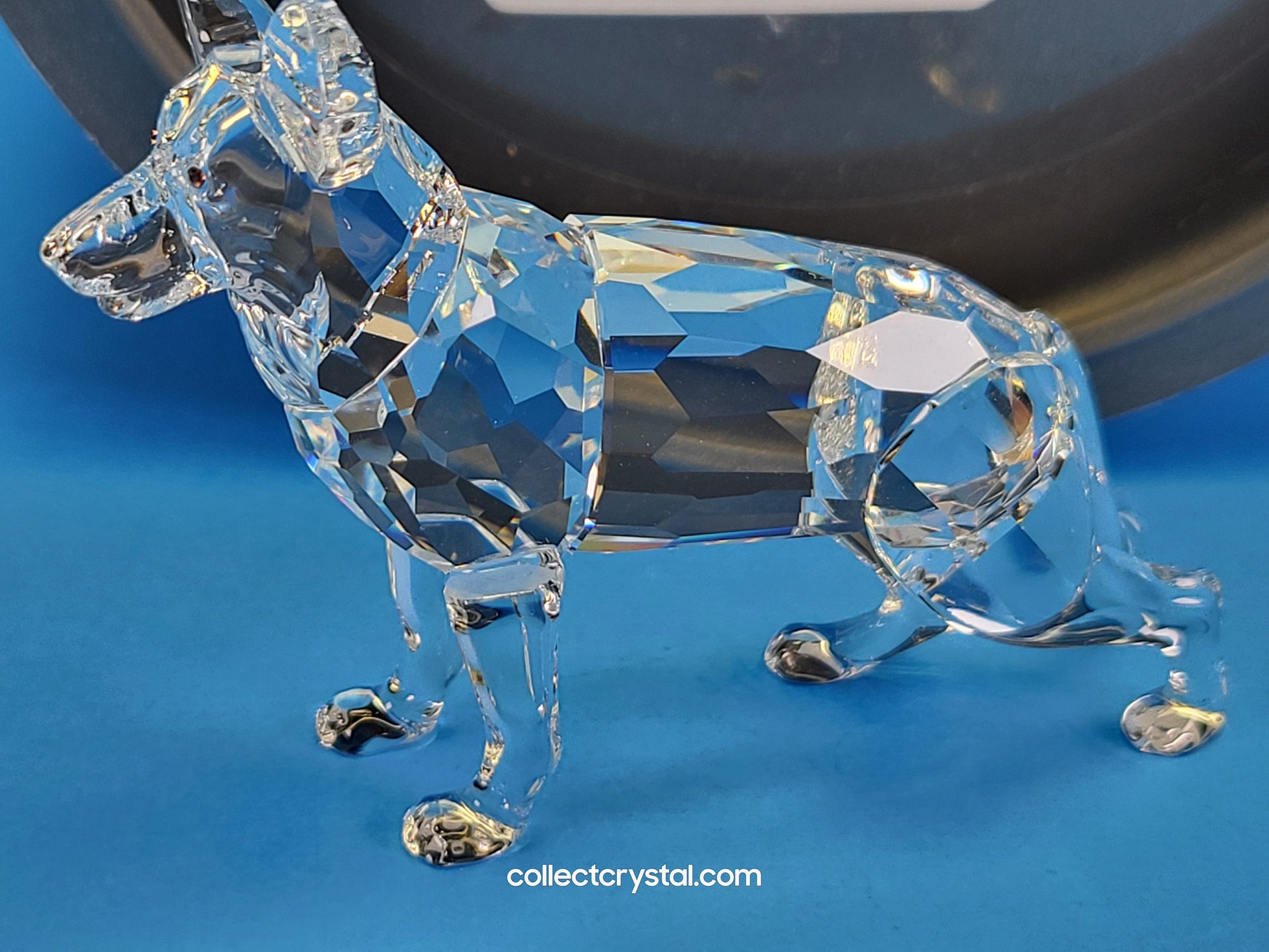 From the “Pets Corner” collection, this Swarovski crystal German Shepherd dog is made from clear crystal.