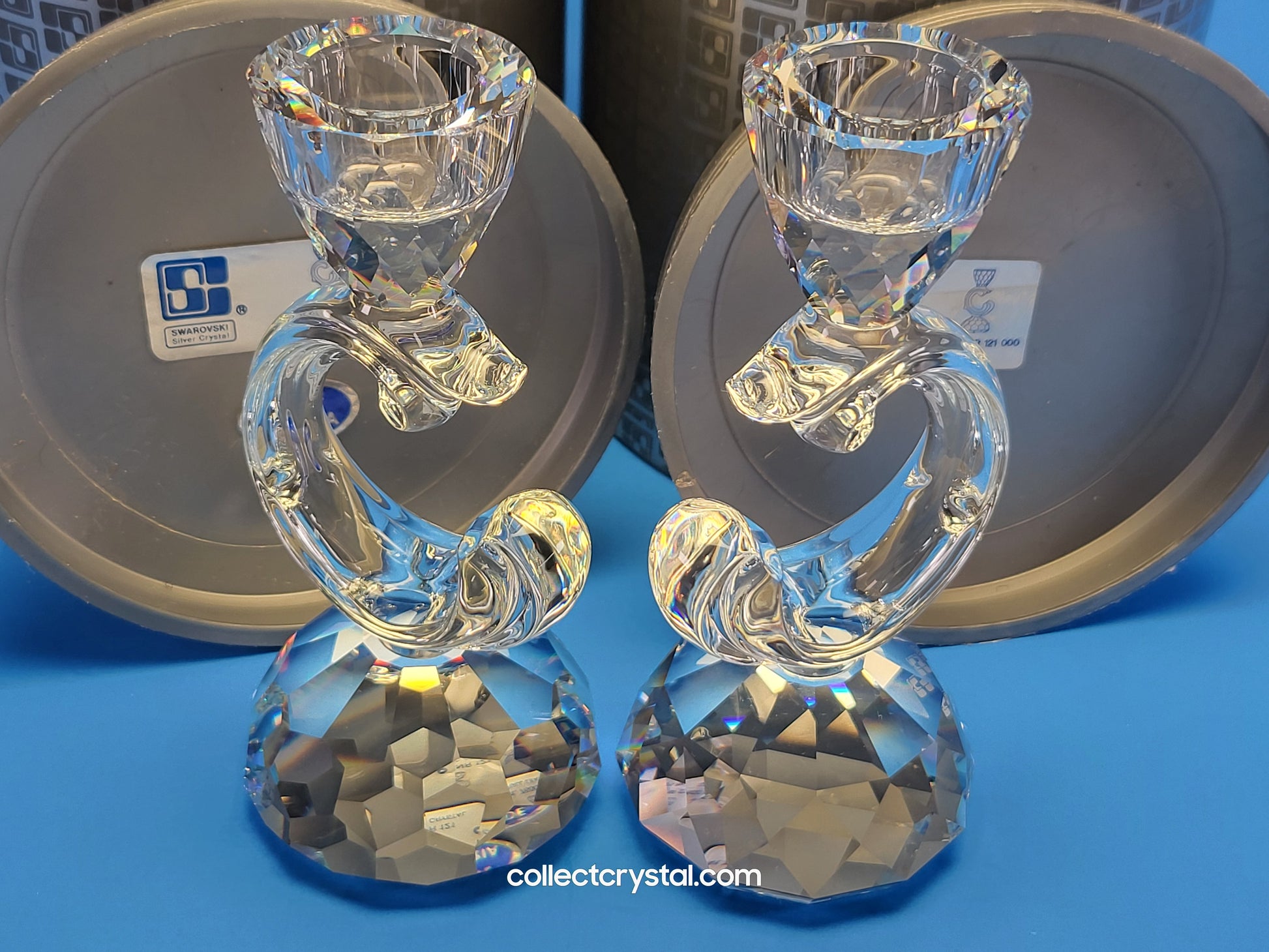 This retired Swarovski crystal Baroque candleholder iwas made for the USA market in the hole/cup style and is designed to hold one candle. There are 3 known variations of this candleholder, this is v1 and has diamond cuts on the base.