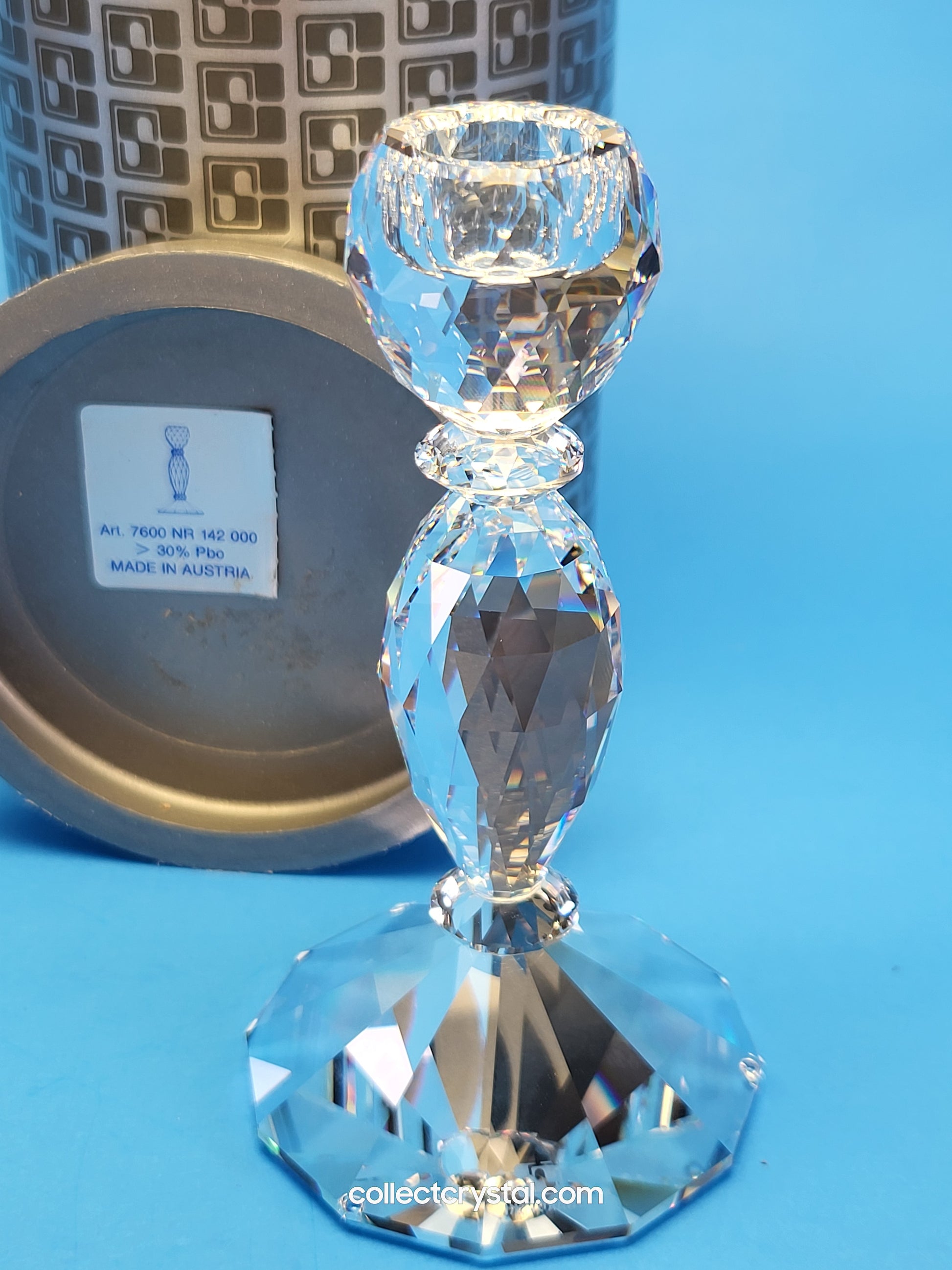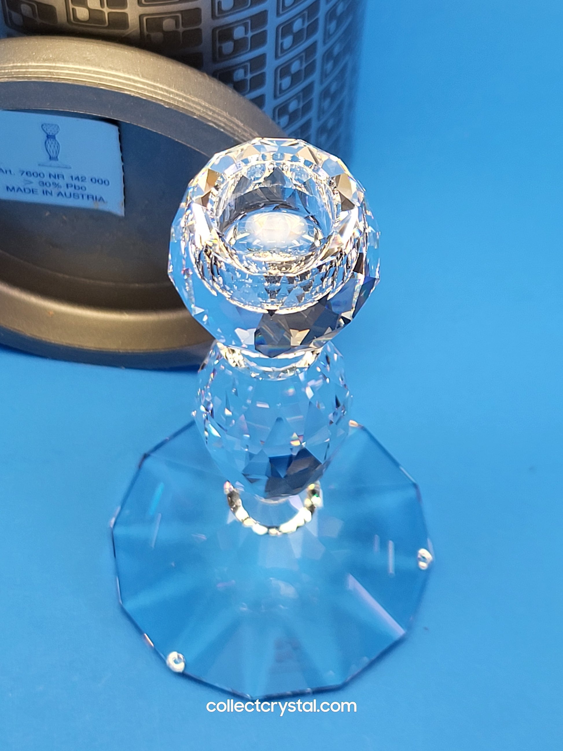 This retired Swarovski crystal 142 candleholder was made for the European market and is designed to hold one candle.