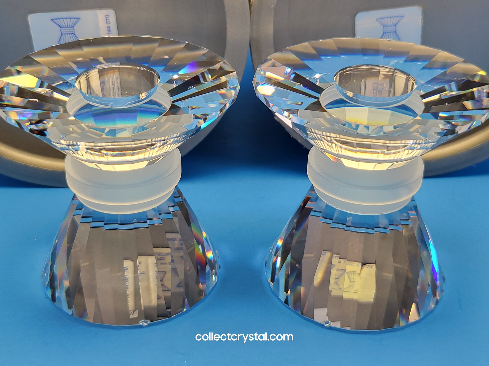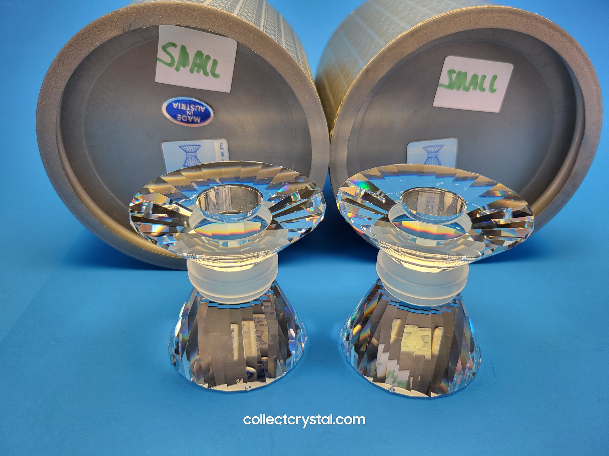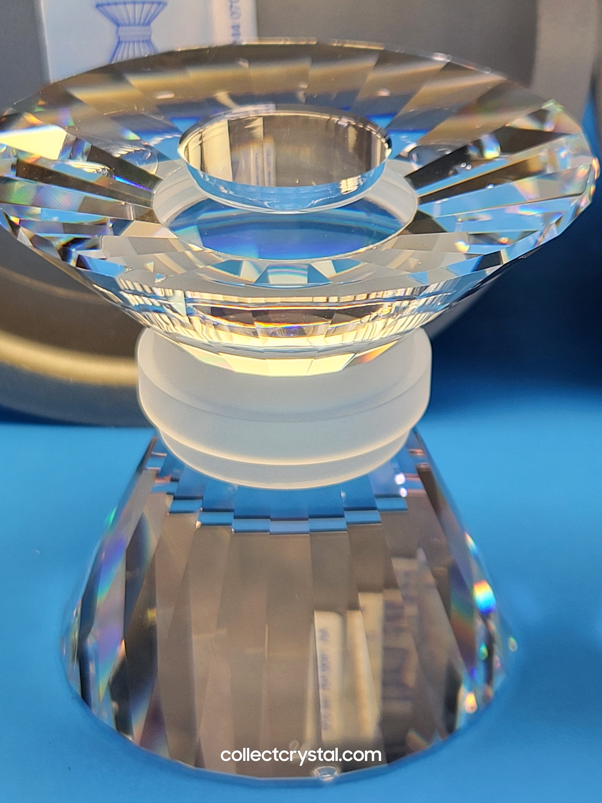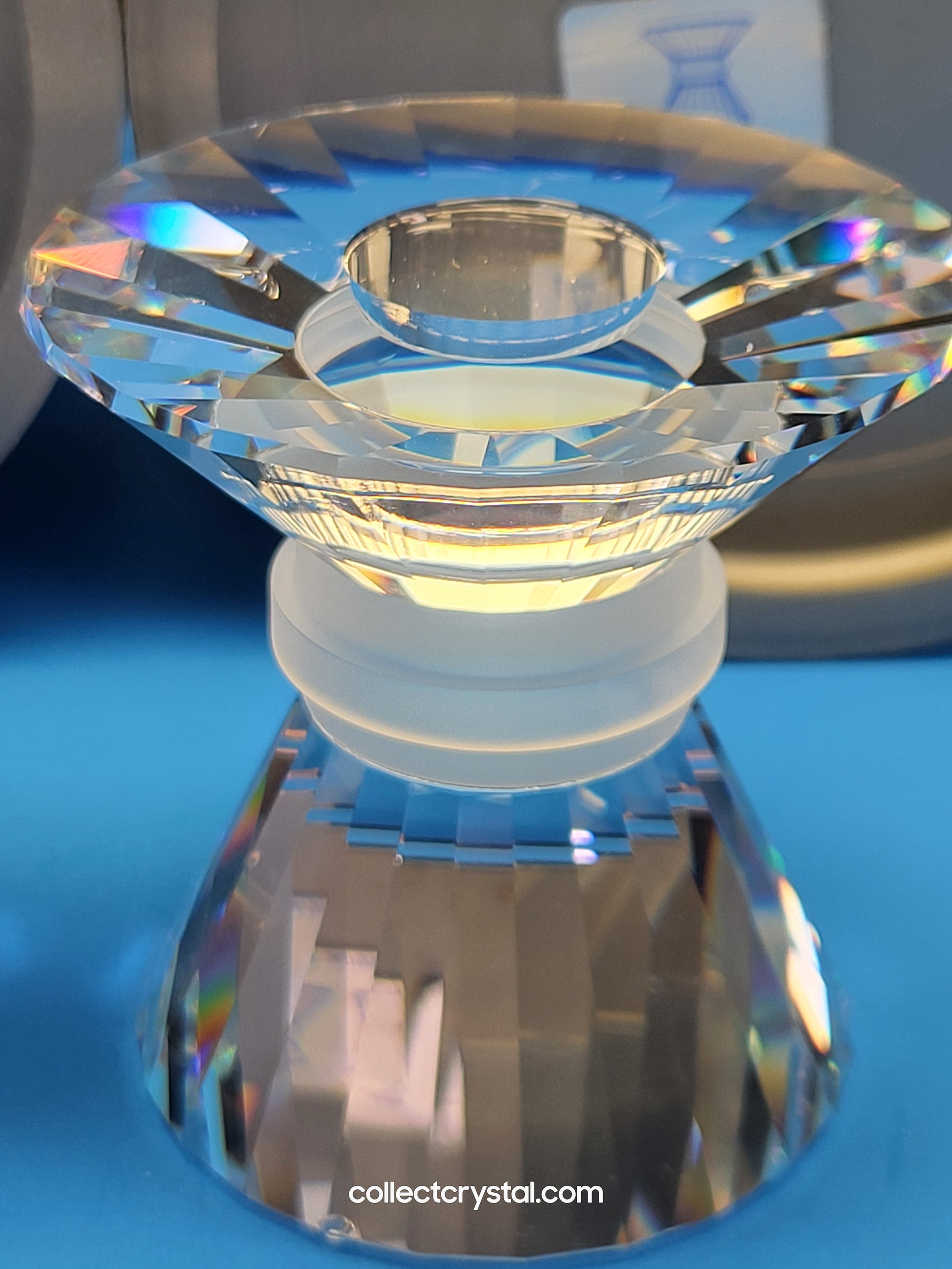 This retired Swarovski crystal 144 small neo-classic candleholder is designed to hold one candle. Part of the “Our Candleholders” theme, the small neo-classic candleholder is the smallest of the 3 sizes of candleholder produced in this design.