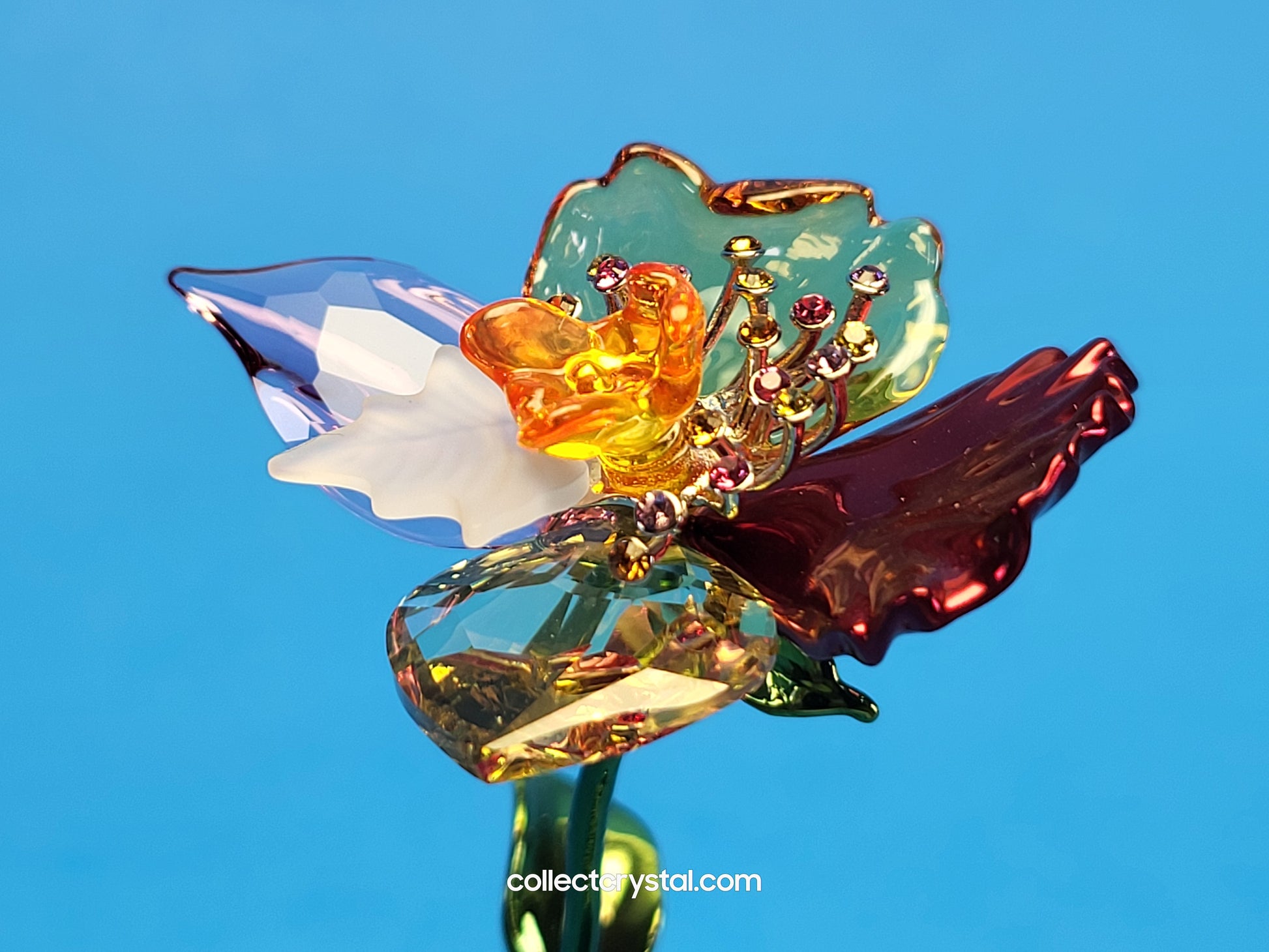 Embrace a flower that is always in full bloom. Reaching tall on its elegant green stem, this extraordinary figurine is crafted in varying shades of yellow and pink crystals with 76 beautiful facets, enhanced with lacquered metal accents and 17 additional stones. A vivid touch of nature that will brighten any home.