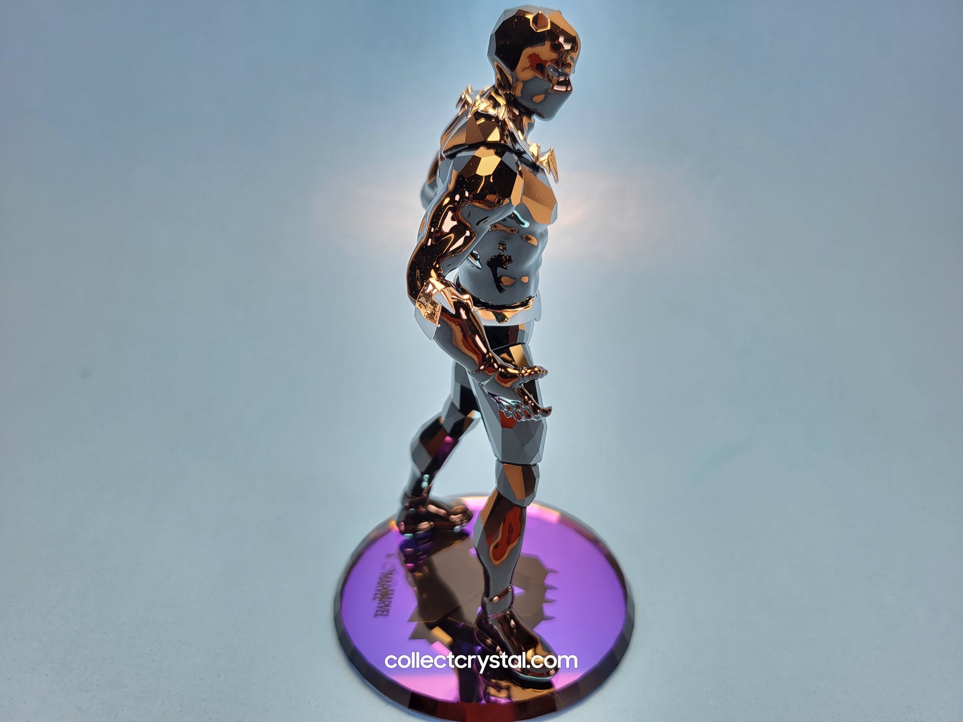 Looking tall, strong, and powerful, this sleek figurine is a shining depiction of the King of Wakanda. Swarovski’s attention to detail and expert master cutting is evident in every authentic detail, including the 649 facets made with signature black tones. The character stands on a base wearing his iconic Vibranium suit, and with a polished metal claw necklace for a genuine touch of superhero style. This is a must-have item for any Marvel fan.