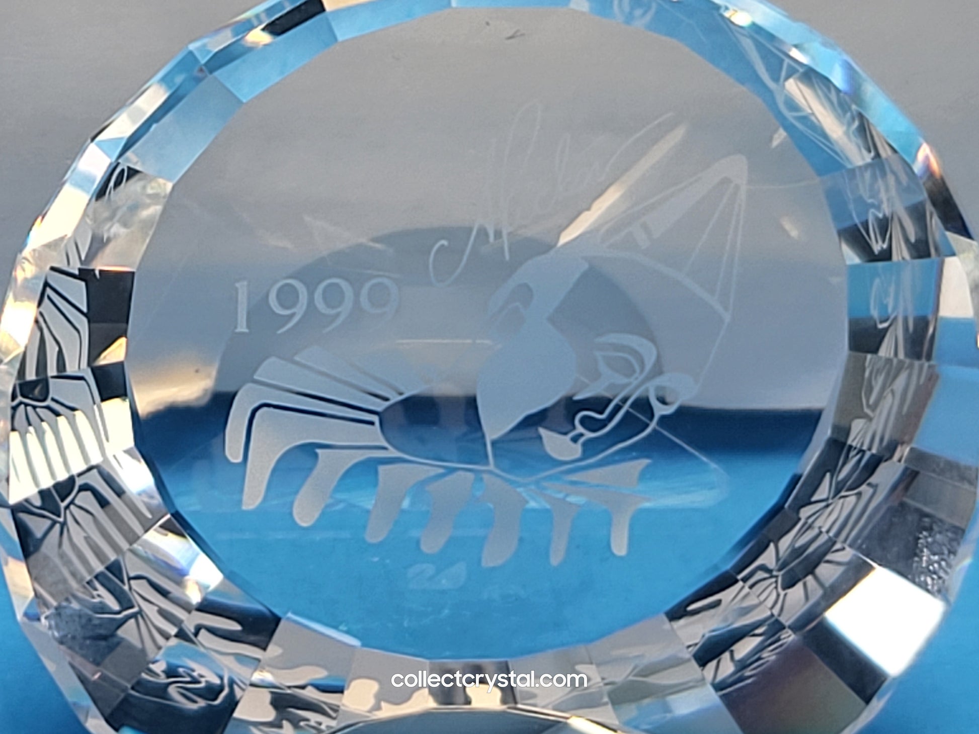 This disc paperweight was made to accompany the Pierrot annual edition. It is etched with a drawing of Pierrot’s face, the year 1999 and Adi Stocker’s signature. The paperweight was available for sale at special events during 1999, and was given as a gift to UK members who went on the Orient Express excursions organised by Swarovski to celebrate the launch of the Masquerade trilogy.