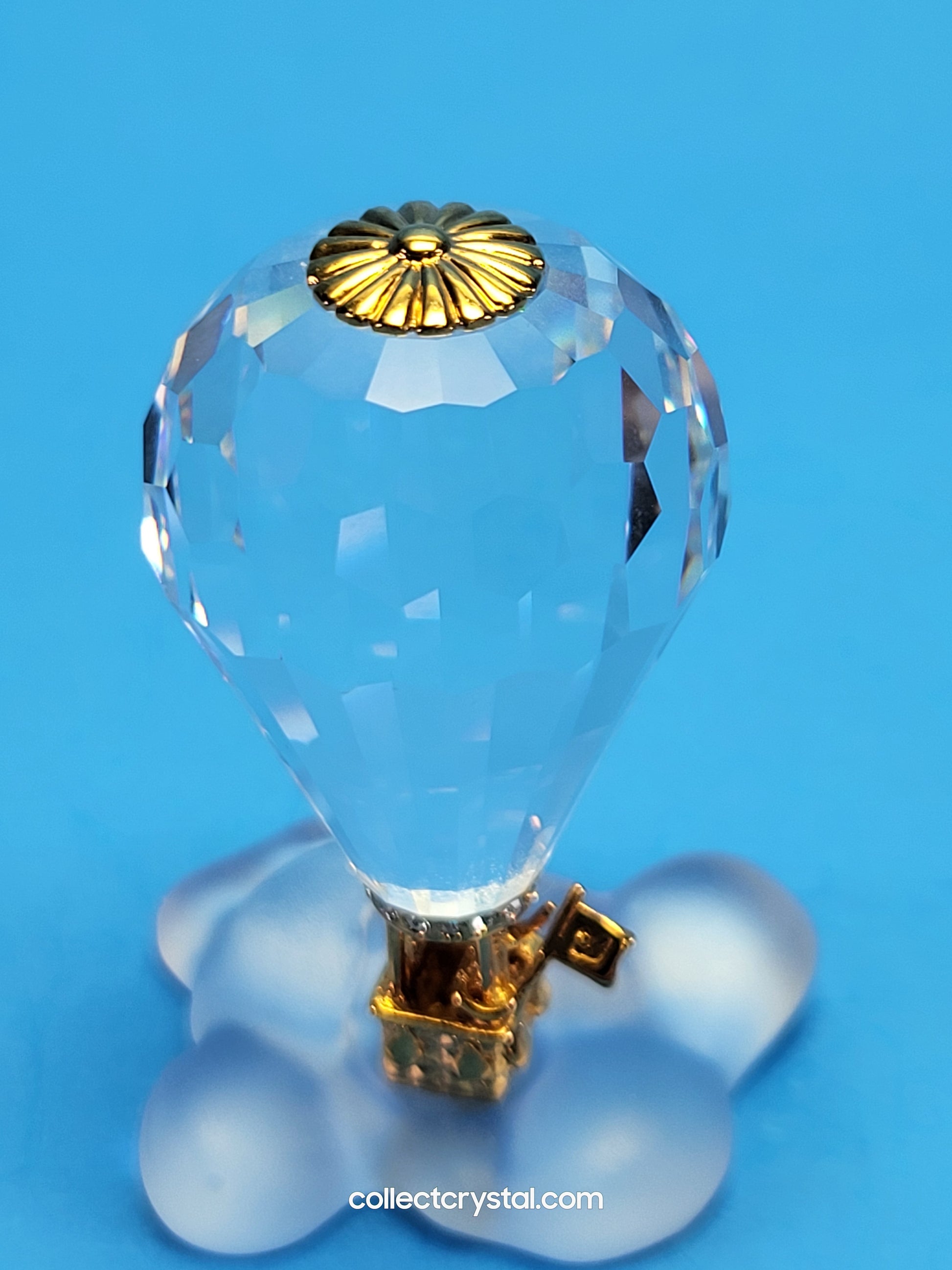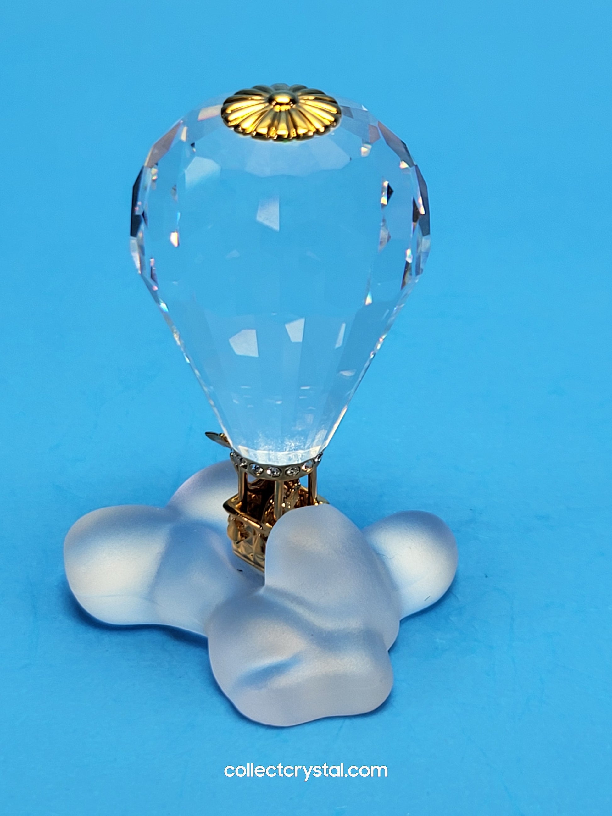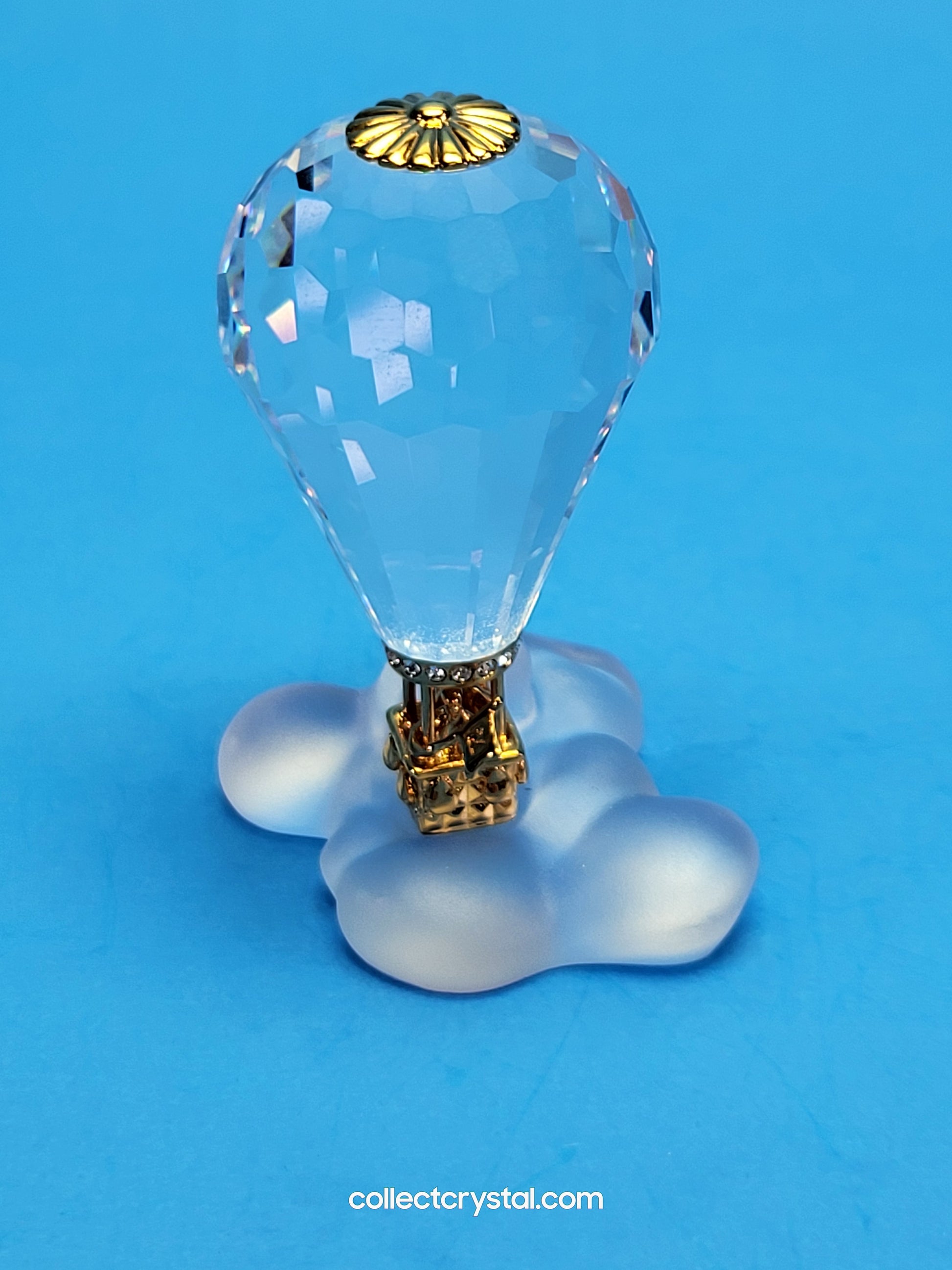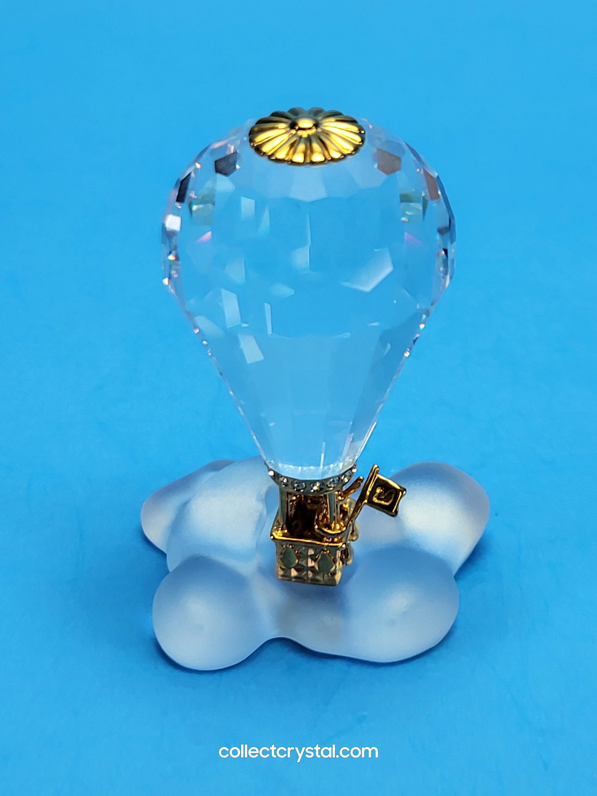 This retired Swarovski Crystal Moments hot air balloon was part of the “Journeys” theme group. The metal is gold plated.
